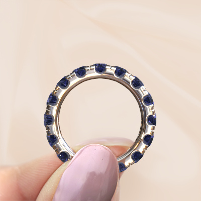 Dieser Jackie 4.0 Vorsteckring in 14 Karat Weißgold ist mit Saphir besetzt. Dieser Weißgold Jackie 4.0 Ring ist die perfekte Ergänzung zu Ihrer Ring-Kollektion! Wie der Name schon sagt, ist es ein Ring, der an einem Finger mit einem anderen Ring kombiniert werden kann. Das gibt Ihnen die Möglichkeit, Ihren eigenen Stil zu schaffen. Ein Vorsteckring repräsentiert normalerweise eine bestimmte Erinnerung an jemand Besonderen, oder an einen denkwürdigen Moment. Es ist üblich, einen Vorsteckring, welcher ein Jubiläum darstellt, mit einem Trauring zu kombinieren. Aber dieser eternity Ring, kombiniert mit Ihren anderen Ringen, ist auch ein klassisches Modeobjekt. Sobald Sie Ihren Jackie 4.0 Vorsteckring mit unserem Online-Tool fertiggestellt haben, beginnen unsere Goldschmiede mit der kreativen Anfertigung Ihres Ringes. Dieser wird mit Leidenschaft und Sorgfalt nach alter Handwerkskunst gefertigt. Darüber hinaus sind unsere Edelsteine ehrlich gewonnen. Wenn Sie spezielle Änderungen an Ihrem Jackie 4.0 Vorsteckring vornehmen möchten, die in unserem Online-Tool nicht verfügbar sind, wenden Sie sich bitte an unsere Experten.Haben Sie ein bestimmtes Budget? Sie können uns gerne kontaktieren, damit wir Ihre Optionen besprechen können. Wir bieten unsere Ringe zum garantiert besten Preis, denn wir fertigen sie auf Bestellung. Solche Preise finden Sie nirgendwo anders!Um es einfacher zu machen, bieten wir eine kostenlose 30-tägige Rücksendung.