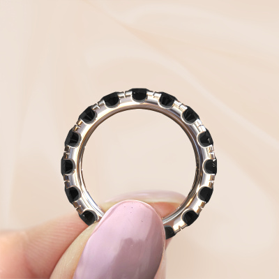 Dieser Jackie 4.0 Vorsteckring in 14 Karat Weißgold ist mit Schwarz Diamant besetzt. Dieser Weißgold Jackie 4.0 Ring ist die perfekte Ergänzung zu Ihrer Ring-Kollektion! Wie der Name schon sagt, ist es ein Ring, der an einem Finger mit einem anderen Ring kombiniert werden kann. Das gibt Ihnen die Möglichkeit, Ihren eigenen Stil zu schaffen. Ein Vorsteckring repräsentiert normalerweise eine bestimmte Erinnerung an jemand Besonderen, oder an einen denkwürdigen Moment. Es ist üblich, einen Vorsteckring, welcher ein Jubiläum darstellt, mit einem Trauring zu kombinieren. Aber dieser eternity Ring, kombiniert mit Ihren anderen Ringen, ist auch ein klassisches Modeobjekt. Sobald Sie Ihren Jackie 4.0 Vorsteckring mit unserem Online-Tool fertiggestellt haben, beginnen unsere Goldschmiede mit der kreativen Anfertigung Ihres Ringes. Dieser wird mit Leidenschaft und Sorgfalt nach alter Handwerkskunst gefertigt. Darüber hinaus sind unsere Edelsteine ehrlich gewonnen. Wenn Sie spezielle Änderungen an Ihrem Jackie 4.0 Vorsteckring vornehmen möchten, die in unserem Online-Tool nicht verfügbar sind, wenden Sie sich bitte an unsere Experten.Haben Sie ein bestimmtes Budget? Sie können uns gerne kontaktieren, damit wir Ihre Optionen besprechen können. Wir bieten unsere Ringe zum garantiert besten Preis, denn wir fertigen sie auf Bestellung. Solche Preise finden Sie nirgendwo anders!Um es einfacher zu machen, bieten wir eine kostenlose 30-tägige Rücksendung.