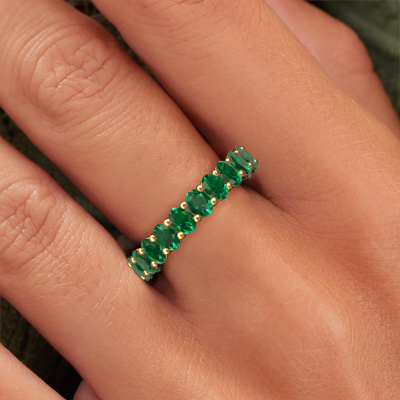 Das ist unser Heddy OVL 3x4-Ring. Dieser spezielle Typ wird als Eternity ring bezeichnet und ist mit einer durchgehenden Linie von identisch geschliffenen Edelsteinen besetzt. Er ist aus 14 Karat Gold und mit kleineren Smaragd 4x3 mm besetzt. Dieser Gold Eternity Ring ist eine wunderschöne und sinnvolle Möglichkeit, Ihrem Antrag eine besondere Note zu verleihen. Die herrlich gleichmäßig geformten Smaragd sind rund um den Ring eingefasst. Die identischen Smaragd werden sorgfältig ausgewählt, um dem Ring eine maximale Wirkung zu verleihen. Denken Sie daran, dass wir natürliche Ressourcen verwenden. Daher sind kleine Unterschiede zwischen den Steinen üblich. Der besondere Effekt wird durch die präzise Positionierung der Smaragd noch verstärkt. Dies erfordert äußerste Präzision und eine geschickte Hand. Für unsere erfahrenen Juweliere ist die pure Leidenschaft. Am Ende bekommen Sie einen Vorsteckring mit einer Reihe von Smaragd, die weder Anfang noch Ende zu haben scheinen. Das perfekte Symbol für Ihre Liebe zu ihr! Ist sie nicht eine Schönheit? Nachdem Sie Ihre Bestellung aufgegeben haben, beginnen unsere Goldschmiede mit dem kreativen Prozess der Herstellung Ihres Heddy OVL 3x4 Ring. Wir haben keine Lager. Das ist vorteilhaft, da diese Kosten nicht an Sie weitergegeben werden. Daher sind wir in der Lage, Schmuck zu außergewöhnlich niedrigen Preisen anzubieten.