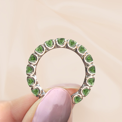 Dieser Estee 4.0 Ring in 14 Karat Weißgold ist mit Turmalin grün besetzt. Dieser Weißgold Estee 4.0 Ring ist die perfekte Ergänzung zu Ihrer Ring-Kollektion! Wie der Name schon sagt, ist es ein Ring, der an einem Finger mit einem anderen Ring kombiniert werden kann. Das gibt Ihnen die Möglichkeit, Ihren eigenen Stil zu schaffen. Ein Ring repräsentiert normalerweise eine bestimmte Erinnerung an jemand Besonderen, oder an einen denkwürdigen Moment. Es ist üblich, einen Ring, welcher ein Jubiläum darstellt, mit einem Trauring zu kombinieren. Aber dieser eternity Ring, kombiniert mit Ihren anderen Ringen, ist auch ein klassisches Modeobjekt. Sobald Sie Ihren Estee 4.0 Ring mit unserem Online-Tool fertiggestellt haben, beginnen unsere Goldschmiede mit der kreativen Anfertigung Ihres Ringes. Dieser wird mit Leidenschaft und Sorgfalt nach alter Handwerkskunst gefertigt. Darüber hinaus sind unsere Edelsteine ehrlich gewonnen. Wenn Sie spezielle Änderungen an Ihrem Estee 4.0 Ring vornehmen möchten, die in unserem Online-Tool nicht verfügbar sind, wenden Sie sich bitte an unsere Experten.Mit unserer modernen Technik können wir Schmuckstücke von höchster Qualität mit größter Sorgfalt für Sie entwerfen und anpassen. Unsere Ringe sind immer um 30 Prozent günstiger als bei anderen Juwelieren. Wir fertigen Ringe auf Bestellung, also müssen wir keine großen Lager unterhalten. Wenn Sie ein bestimmtes Budget haben, beraten wir Sie gerne entsprechend.Um es einfacher zu machen, bieten wir eine kostenlose 30-tägige Rücksendung.
