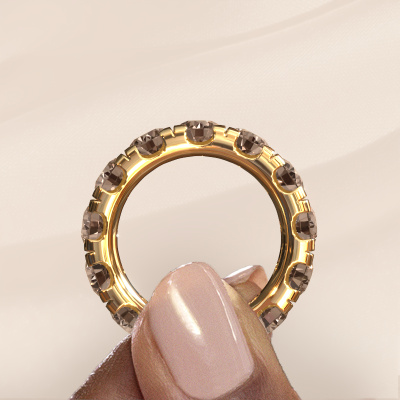 Das ist unser Jackie 5.0-Ring. Dieser spezielle Typ wird als eternity Ring bezeichnet und ist mit einer durchgehenden Linie von identisch geschliffenen Edelsteinen besetzt. Er ist aus 14 Karat Gold und mit kleineren 0.50 crt Braune Diamanten besetzt. Die erstaunlichen Braune Diamanten sind identisch in der Größe und im Ringband platziert. Unsere Braune Diamanten werden sorgfältig ausgewählt, damit sie identisch sind und somit das beste Ergebnis erzielen. Um das beste Ergebnis zu erzielen, positioniert unser Juwelier alle Braune Diamanten von Hand und mit größter Sorgfalt. Unsere Juweliere haben nur ein Ziel, nämlich den perfekten Ring zu kreieren. Deshalb lieben wir, was wir tun. Am Ende bekommen Sie einen atemberaubenden, exklusive Gold Vorsteckring mit einer Reihe von Braune Diamanten, die weder Anfang noch Ende zu haben scheinen. Das perfekte Symbol für Ihre unsterbliche Liebe zu ihr! Ist sie nicht eine Schönheit? Nach Erhalt Ihrer Bestellung beginnen unsere Goldschmiede mit Leidenschaft den kreativen Prozess und fertigen Ihren Ring in unserem eigenen Studio. Da wir keine großen Lager haben, werden diese Kosten nicht an Sie weitergegeben. Unsere Preisgestaltung ist der Beweis dafür! Wir bieten Schmuck zum niedrigsten Preis, garantiert.Unsere talentierten, leidenschaftlichen Designer fügen unserer Online-Kollektion täglich neue Designs hinzu. Zusammen versuchen sie, eine vielfältige Kollektion feinster Schmuckstücke zu erstellen. Wenn Sie es vorziehen, einen Ring nach Ihrem eigenen Entwurf zu machen, können Sie gerne ein Angebot anfordern. Wir machen Ihnen ein großartiges Angebot, basierend auf Qualität und Preis.Um es einfacher zu machen, bieten wir eine kostenlose 30-tägige Rücksendung.