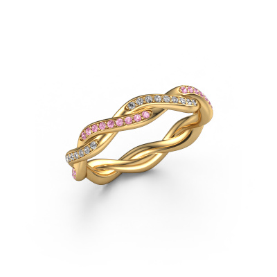 Das ist unser Swing full-Ring. Dieser spezielle Typ wird als eternity Ring bezeichnet und ist mit einer durchgehenden Linie von identisch geschliffenen Edelsteinen besetzt. Er ist aus 14 Karat Gold und mit kleineren 1 mm Pink Saphir besetzt. Die erstaunlichen Pink Saphir sind identisch in der Größe und im Ringband platziert. Unsere Pink Saphir werden sorgfältig ausgewählt, damit sie identisch sind und somit das beste Ergebnis erzielen. Um das beste Ergebnis zu erzielen, positioniert unser Juwelier alle Pink Saphir von Hand und mit größter Sorgfalt. Unsere Juweliere haben nur ein Ziel, nämlich den perfekten Ring zu kreieren. Deshalb lieben wir, was wir tun. Am Ende bekommen Sie einen atemberaubenden, Fantasie Gold Vorsteckring mit einer Reihe von Pink Saphir, die weder Anfang noch Ende zu haben scheinen. Das perfekte Symbol für Ihre unsterbliche Liebe zu ihr! Ist sie nicht eine Schönheit? Nach Erhalt Ihrer Bestellung beginnen unsere Goldschmiede mit Leidenschaft den kreativen Prozess und fertigen Ihren Ring in unserem eigenen Studio. Da wir keine großen Lager haben, werden diese Kosten nicht an Sie weitergegeben. Unsere Preisgestaltung ist der Beweis dafür! Wir bieten Schmuck zum niedrigsten Preis, garantiert.Unsere Online-Kollektion wird täglich um neue Schmuckdesigns ergänzt. Unser Team von leidenschaftlichen Designern ist bemüht, außergewöhnliche und vielfältige Designs zu kreieren. Haben Sie einen Ring gesehen, der Ihnen gefällt? Setzen Sie sich mit uns in Verbindung. Basierend auf einem guten Preis/Leistungsverhältnis machen wir Ihnen ein Angebot, das Sie nicht ablehnen können!Um es einfacher zu machen, bieten wir eine kostenlose 30-tägige Rücksendung.