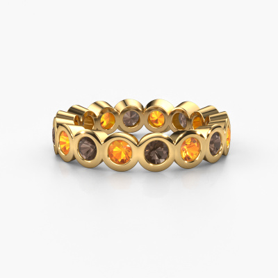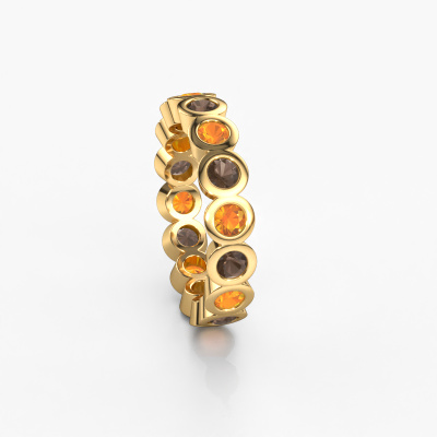 Das ist unser Edwina 3-Ring. Dieser spezielle Typ wird als eternity Ring bezeichnet und ist mit einer durchgehenden Linie von identisch geschliffenen Edelsteinen besetzt. Er ist aus 14 Karat Gold und mit kleineren 3 mm Rauchquarz besetzt. Die erstaunlichen Rauchquarz sind identisch in der Größe und im Ringband platziert. Unsere Rauchquarz werden sorgfältig ausgewählt, damit sie identisch sind und somit das beste Ergebnis erzielen. Um das beste Ergebnis zu erzielen, positioniert unser Juwelier alle Rauchquarz von Hand und mit größter Sorgfalt. Unsere Juweliere haben nur ein Ziel, nämlich den perfekten Ring zu kreieren. Deshalb lieben wir, was wir tun. Am Ende bekommen Sie einen atemberaubenden, trendige Gold Vorsteckring mit einer Reihe von Rauchquarz, die weder Anfang noch Ende zu haben scheinen. Das perfekte Symbol für Ihre unsterbliche Liebe zu ihr! Ist sie nicht eine Schönheit? Nach Erhalt Ihrer Bestellung beginnen unsere Goldschmiede mit Leidenschaft den kreativen Prozess und fertigen Ihren Ring in unserem eigenen Studio. Da wir keine großen Lager haben, werden diese Kosten nicht an Sie weitergegeben. Unsere Preisgestaltung ist der Beweis dafür! Wir bieten Schmuck zum niedrigsten Preis, garantiert.Unser Team von talentierten, leidenschaftlichen Designern fügt unserer Online-Kollektion täglich neue Ring-Designs hinzu. Unser Ziel dabei ist es, Ihnen eine große Vielfalt an Schmuckstücken anbieten zu können. Bitte zögern Sie nicht, ein Angebot anzufordern, wenn Sie spezielle Wünsche für Ihren Ring haben. Wir garantieren Ihnen ein Angebot, das Sie nicht ablehnen können.Um es einfacher zu machen, bieten wir eine kostenlose 30-tägige Rücksendung.