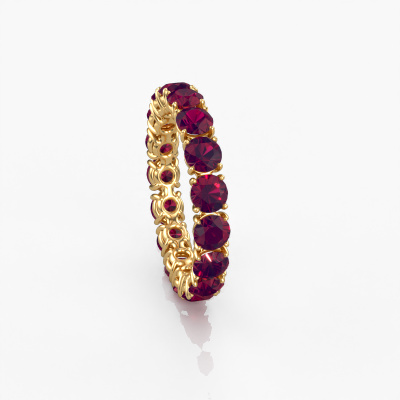 Das ist unser Vivienne 3.7-Ring. Dieser spezielle Typ wird als eternity Ring bezeichnet und ist mit einer durchgehenden Linie von identisch geschliffenen Edelsteinen besetzt. Er ist aus 14 Karat Gold und mit kleineren 3.7 mm Rhodolit besetzt. Die erstaunlichen Rhodolit sind identisch in der Größe und im Ringband platziert. Unsere Rhodolit werden sorgfältig ausgewählt, damit sie identisch sind und somit das beste Ergebnis erzielen. Um das beste Ergebnis zu erzielen, positioniert unser Juwelier alle Rhodolit von Hand und mit größter Sorgfalt. Unsere Juweliere haben nur ein Ziel, nämlich den perfekten Ring zu kreieren. Deshalb lieben wir, was wir tun. Am Ende bekommen Sie einen atemberaubenden, klassische Gold Vorsteckring mit einer Reihe von Rhodolit, die weder Anfang noch Ende zu haben scheinen. Das perfekte Symbol für Ihre unsterbliche Liebe zu ihr! Ist sie nicht eine Schönheit? Nachdem Sie Ihre Bestellung aufgegeben haben, beginnen unsere Goldschmiede mit dem kreativen Prozess der Herstellung Ihres Vivienne 3.7 Ring. Wir haben keine Lager. Das ist vorteilhaft, da diese Kosten nicht an Sie weitergegeben werden. Daher sind wir in der Lage, Schmuck zu außergewöhnlich niedrigen Preisen anzubieten.Unsere Online-Kollektion wird täglich um neue Schmuckdesigns ergänzt. Unser Team von leidenschaftlichen Designern ist bemüht, außergewöhnliche und vielfältige Designs zu kreieren. Haben Sie einen Ring gesehen, der Ihnen gefällt? Setzen Sie sich mit uns in Verbindung. Basierend auf einem guten Preis/Leistungsverhältnis machen wir Ihnen ein Angebot, das Sie nicht ablehnen können!Um es einfacher zu machen, bieten wir eine kostenlose 30-tägige Rücksendung.