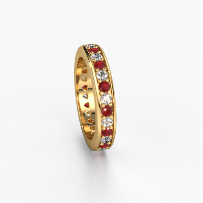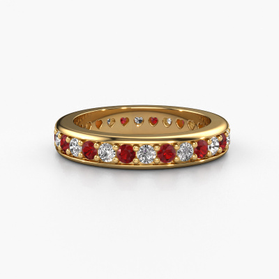 Das ist unser Nienke-Ring. Dieser spezielle Typ wird als eternity Ring bezeichnet und ist mit einer durchgehenden Linie von identisch geschliffenen Edelsteinen besetzt. Er ist aus 14 Karat Gold und mit kleineren 2.2 mm Rubin besetzt. Die erstaunlichen Rubin sind identisch in der Größe und im Ringband platziert. Unsere Rubin werden sorgfältig ausgewählt, damit sie identisch sind und somit das beste Ergebnis erzielen. Um das beste Ergebnis zu erzielen, positioniert unser Juwelier alle Rubin von Hand und mit größter Sorgfalt. Unsere Juweliere haben nur ein Ziel, nämlich den perfekten Ring zu kreieren. Deshalb lieben wir, was wir tun. Am Ende bekommen Sie einen atemberaubenden, moderne Gold Vorsteckring mit einer Reihe von Rubin, die weder Anfang noch Ende zu haben scheinen. Das perfekte Symbol für Ihre unsterbliche Liebe zu ihr! Ist sie nicht eine Schönheit? Nachdem Sie Ihre Bestellung aufgegeben haben, beginnen unsere Goldschmiede mit dem kreativen Prozess der Herstellung Ihres Nienke Ring. Wir haben keine Lager. Das ist vorteilhaft, da diese Kosten nicht an Sie weitergegeben werden. Daher sind wir in der Lage, Schmuck zu außergewöhnlich niedrigen Preisen anzubieten.Unser Team von talentierten, leidenschaftlichen Designern fügt unserer Online-Kollektion täglich neue Ring-Designs hinzu. Unser Ziel dabei ist es, Ihnen eine große Vielfalt an Schmuckstücken anbieten zu können. Bitte zögern Sie nicht, ein Angebot anzufordern, wenn Sie spezielle Wünsche für Ihren Ring haben. Wir garantieren Ihnen ein Angebot, das Sie nicht ablehnen können.Um es einfacher zu machen, bieten wir eine kostenlose 30-tägige Rücksendung.