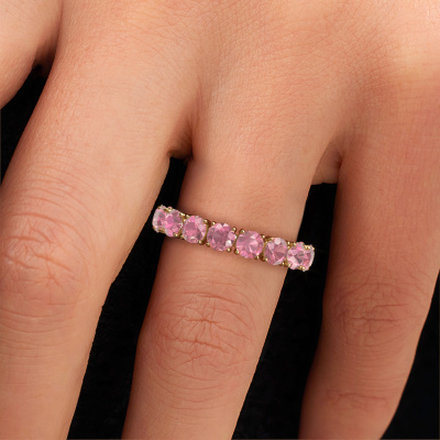 Das ist unser Vivienne 3.7-Ring. Dieser spezielle Typ wird als eternity Ring bezeichnet und ist mit einer durchgehenden Linie von identisch geschliffenen Edelsteinen besetzt. Er ist aus 14 Karat Gold und mit kleineren 3.7 mm Turmalin rosa besetzt. Die erstaunlichen Turmalin rosa sind identisch in der Größe und im Ringband platziert. Unsere Turmalin rosa werden sorgfältig ausgewählt, damit sie identisch sind und somit das beste Ergebnis erzielen. Um das beste Ergebnis zu erzielen, positioniert unser Juwelier alle Turmalin rosa von Hand und mit größter Sorgfalt. Unsere Juweliere haben nur ein Ziel, nämlich den perfekten Ring zu kreieren. Deshalb lieben wir, was wir tun. Am Ende bekommen Sie einen atemberaubenden, klassische Gold Vorsteckring mit einer Reihe von Turmalin rosa, die weder Anfang noch Ende zu haben scheinen. Das perfekte Symbol für Ihre unsterbliche Liebe zu ihr! Ist sie nicht eine Schönheit? Nachdem Sie Ihre Bestellung aufgegeben haben, beginnen unsere Goldschmiede mit dem kreativen Prozess der Herstellung Ihres Vivienne 3.7 Ring. Wir haben keine Lager. Das ist vorteilhaft, da diese Kosten nicht an Sie weitergegeben werden. Daher sind wir in der Lage, Schmuck zu außergewöhnlich niedrigen Preisen anzubieten.Unsere Online-Kollektion wird täglich um neue Schmuckdesigns ergänzt. Unser Team von leidenschaftlichen Designern ist bemüht, außergewöhnliche und vielfältige Designs zu kreieren. Haben Sie einen Ring gesehen, der Ihnen gefällt? Setzen Sie sich mit uns in Verbindung. Basierend auf einem guten Preis/Leistungsverhältnis machen wir Ihnen ein Angebot, das Sie nicht ablehnen können!Um es einfacher zu machen, bieten wir eine kostenlose 30-tägige Rücksendung.