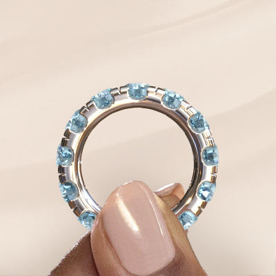 Das ist unser Jackie 5.0-Ring. Dieser spezielle Typ wird als eternity Ring bezeichnet und ist mit einer durchgehenden Linie von identisch geschliffenen Edelsteinen besetzt. Er ist aus Platin und mit kleineren 5 mm blauer Labordiamanten besetzt. Die erstaunlichen blauer Labordiamanten sind identisch in der Größe und im Ringband platziert. Unsere blauer Labordiamanten werden sorgfältig ausgewählt, damit sie identisch sind und somit das beste Ergebnis erzielen. Um das beste Ergebnis zu erzielen, positioniert unser Juwelier alle blauer Labordiamanten von Hand und mit größter Sorgfalt. Unsere Juweliere haben nur ein Ziel, nämlich den perfekten Ring zu kreieren. Deshalb lieben wir, was wir tun. Am Ende bekommen Sie einen atemberaubenden, exklusive Platin Vorsteckring mit einer Reihe von blauer Labordiamanten, die weder Anfang noch Ende zu haben scheinen. Das perfekte Symbol für Ihre unsterbliche Liebe zu ihr! Ist sie nicht eine Schönheit? Nach Erhalt Ihrer Bestellung beginnen unsere Goldschmiede mit Leidenschaft den kreativen Prozess und fertigen Ihren Ring in unserem eigenen Studio. Da wir keine großen Lager haben, werden diese Kosten nicht an Sie weitergegeben. Unsere Preisgestaltung ist der Beweis dafür! Wir bieten Schmuck zum niedrigsten Preis, garantiert.Unsere talentierten, leidenschaftlichen Designer fügen unserer Online-Kollektion täglich neue Designs hinzu. Zusammen versuchen sie, eine vielfältige Kollektion feinster Schmuckstücke zu erstellen. Wenn Sie es vorziehen, einen Ring nach Ihrem eigenen Entwurf zu machen, können Sie gerne ein Angebot anfordern. Wir machen Ihnen ein großartiges Angebot, basierend auf Qualität und Preis.Um es einfacher zu machen, bieten wir eine kostenlose 30-tägige Rücksendung.