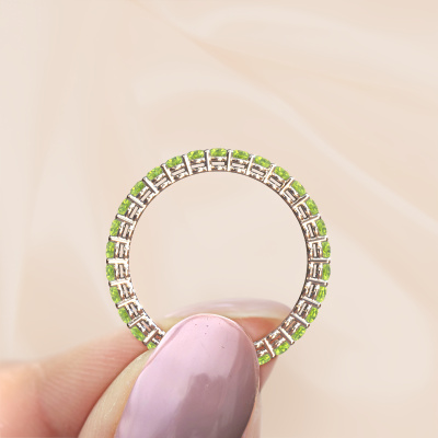 Das ist unser Michelle full 2.0-Ring. Dieser spezielle Typ wird als eternity Ring bezeichnet und ist mit einer durchgehenden Linie von identisch geschliffenen Edelsteinen besetzt. Er ist aus Platin und mit kleineren 2 mm Peridot besetzt. Die erstaunlichen Peridot sind identisch in der Größe und im Ringband platziert. Unsere Peridot werden sorgfältig ausgewählt, damit sie identisch sind und somit das beste Ergebnis erzielen. Um das beste Ergebnis zu erzielen, positioniert unser Juwelier alle Peridot von Hand und mit größter Sorgfalt. Unsere Juweliere haben nur ein Ziel, nämlich den perfekten Ring zu kreieren. Deshalb lieben wir, was wir tun. Am Ende bekommen Sie einen atemberaubenden, klassische Platin Vorsteckring mit einer Reihe von Peridot, die weder Anfang noch Ende zu haben scheinen. Das perfekte Symbol für Ihre unsterbliche Liebe zu ihr! Ist sie nicht eine Schönheit? Durch die Kombination modernster Technik mit uralter Handwerkskunst können wir alle Ringe in unserem eigenen Studio anfertigen. Jedes Schmuckstück wird auf Anfrage gefertigt. Das ist vorteilhaft, weil wir Ihnen dadurch einen Preis anbieten können, den Sie nirgendwo anders finden.Unsere Online-Kollektion wird täglich um neue Schmuckdesigns ergänzt. Unser Team von leidenschaftlichen Designern ist bemüht, außergewöhnliche und vielfältige Designs zu kreieren. Haben Sie einen Ring gesehen, der Ihnen gefällt? Setzen Sie sich mit uns in Verbindung. Basierend auf einem guten Preis/Leistungsverhältnis machen wir Ihnen ein Angebot, das Sie nicht ablehnen können!Um es einfacher zu machen, bieten wir eine kostenlose 30-tägige Rücksendung.