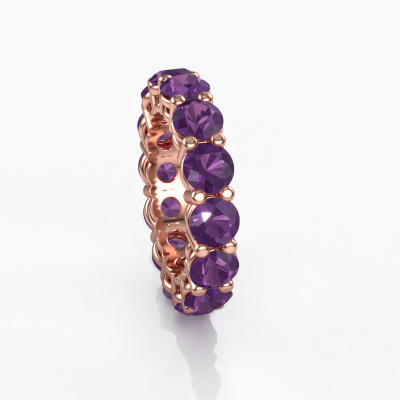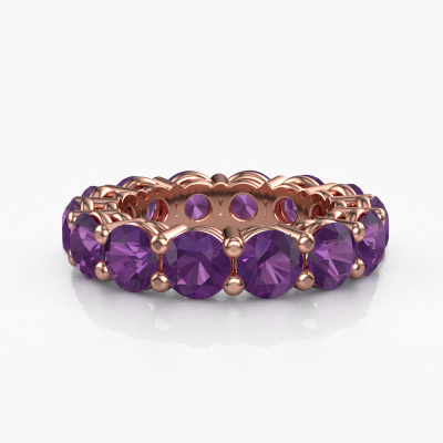 Das ist unser Michelle full 5.0-Ring. Dieser spezielle Typ wird als eternity Ring bezeichnet und ist mit einer durchgehenden Linie von identisch geschliffenen Edelsteinen besetzt. Er ist aus 14 Karat Roségold und mit kleineren 5 mm Amethysten besetzt. Die erstaunlichen Amethysten sind identisch in der Größe und im Ringband platziert. Unsere Amethysten werden sorgfältig ausgewählt, damit sie identisch sind und somit das beste Ergebnis erzielen. Um das beste Ergebnis zu erzielen, positioniert unser Juwelier alle Amethysten von Hand und mit größter Sorgfalt. Unsere Juweliere haben nur ein Ziel, nämlich den perfekten Ring zu kreieren. Deshalb lieben wir, was wir tun. Am Ende bekommen Sie einen atemberaubenden, exklusive Roségold Vorsteckring mit einer Reihe von Amethysten, die weder Anfang noch Ende zu haben scheinen. Das perfekte Symbol für Ihre unsterbliche Liebe zu ihr! Ist sie nicht eine Schönheit? Durch die Kombination modernster Technik mit uralter Handwerkskunst können wir alle Ringe in unserem eigenen Studio anfertigen. Jedes Schmuckstück wird auf Anfrage gefertigt. Das ist vorteilhaft, weil wir Ihnen dadurch einen Preis anbieten können, den Sie nirgendwo anders finden.Unsere Online-Kollektion wird täglich um neue Schmuckdesigns ergänzt. Unser Team von leidenschaftlichen Designern ist bemüht, außergewöhnliche und vielfältige Designs zu kreieren. Haben Sie einen Ring gesehen, der Ihnen gefällt? Setzen Sie sich mit uns in Verbindung. Basierend auf einem guten Preis/Leistungsverhältnis machen wir Ihnen ein Angebot, das Sie nicht ablehnen können!Um es einfacher zu machen, bieten wir eine kostenlose 30-tägige Rücksendung.