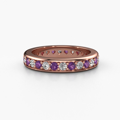 Das ist unser Nienke-Ring. Dieser spezielle Typ wird als eternity Ring bezeichnet und ist mit einer durchgehenden Linie von identisch geschliffenen Edelsteinen besetzt. Er ist aus 14 Karat Roségold und mit kleineren 2.2 mm Amethysten besetzt. Die erstaunlichen Amethysten sind identisch in der Größe und im Ringband platziert. Unsere Amethysten werden sorgfältig ausgewählt, damit sie identisch sind und somit das beste Ergebnis erzielen. Um das beste Ergebnis zu erzielen, positioniert unser Juwelier alle Amethysten von Hand und mit größter Sorgfalt. Unsere Juweliere haben nur ein Ziel, nämlich den perfekten Ring zu kreieren. Deshalb lieben wir, was wir tun. Am Ende bekommen Sie einen atemberaubenden, moderne Roségold Vorsteckring mit einer Reihe von Amethysten, die weder Anfang noch Ende zu haben scheinen. Das perfekte Symbol für Ihre unsterbliche Liebe zu ihr! Ist sie nicht eine Schönheit? Nachdem Sie Ihre Bestellung aufgegeben haben, beginnen unsere Goldschmiede mit dem kreativen Prozess der Herstellung Ihres Nienke Ring. Wir haben keine Lager. Das ist vorteilhaft, da diese Kosten nicht an Sie weitergegeben werden. Daher sind wir in der Lage, Schmuck zu außergewöhnlich niedrigen Preisen anzubieten.Unser Team von talentierten, leidenschaftlichen Designern fügt unserer Online-Kollektion täglich neue Ring-Designs hinzu. Unser Ziel dabei ist es, Ihnen eine große Vielfalt an Schmuckstücken anbieten zu können. Bitte zögern Sie nicht, ein Angebot anzufordern, wenn Sie spezielle Wünsche für Ihren Ring haben. Wir garantieren Ihnen ein Angebot, das Sie nicht ablehnen können.Um es einfacher zu machen, bieten wir eine kostenlose 30-tägige Rücksendung.