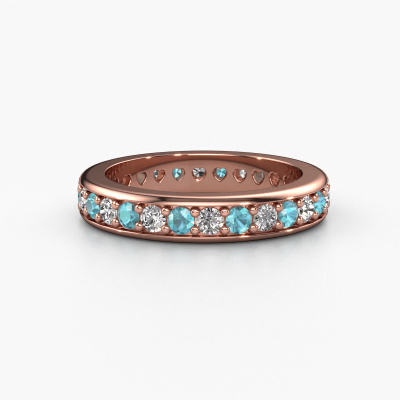 Das ist unser Nienke-Ring. Dieser spezielle Typ wird als eternity Ring bezeichnet und ist mit einer durchgehenden Linie von identisch geschliffenen Edelsteinen besetzt. Er ist aus 14 Karat Roségold und mit kleineren 2.2 mm Blaue Topas besetzt. Die erstaunlichen Blaue Topas sind identisch in der Größe und im Ringband platziert. Unsere Blaue Topas werden sorgfältig ausgewählt, damit sie identisch sind und somit das beste Ergebnis erzielen. Um das beste Ergebnis zu erzielen, positioniert unser Juwelier alle Blaue Topas von Hand und mit größter Sorgfalt. Unsere Juweliere haben nur ein Ziel, nämlich den perfekten Ring zu kreieren. Deshalb lieben wir, was wir tun. Am Ende bekommen Sie einen atemberaubenden, moderne Roségold Vorsteckring mit einer Reihe von Blaue Topas, die weder Anfang noch Ende zu haben scheinen. Das perfekte Symbol für Ihre unsterbliche Liebe zu ihr! Ist sie nicht eine Schönheit? Nachdem Sie Ihre Bestellung aufgegeben haben, beginnen unsere Goldschmiede mit dem kreativen Prozess der Herstellung Ihres Nienke Ring. Wir haben keine Lager. Das ist vorteilhaft, da diese Kosten nicht an Sie weitergegeben werden. Daher sind wir in der Lage, Schmuck zu außergewöhnlich niedrigen Preisen anzubieten.Unser Team von talentierten, leidenschaftlichen Designern fügt unserer Online-Kollektion täglich neue Ring-Designs hinzu. Unser Ziel dabei ist es, Ihnen eine große Vielfalt an Schmuckstücken anbieten zu können. Bitte zögern Sie nicht, ein Angebot anzufordern, wenn Sie spezielle Wünsche für Ihren Ring haben. Wir garantieren Ihnen ein Angebot, das Sie nicht ablehnen können.Um es einfacher zu machen, bieten wir eine kostenlose 30-tägige Rücksendung.