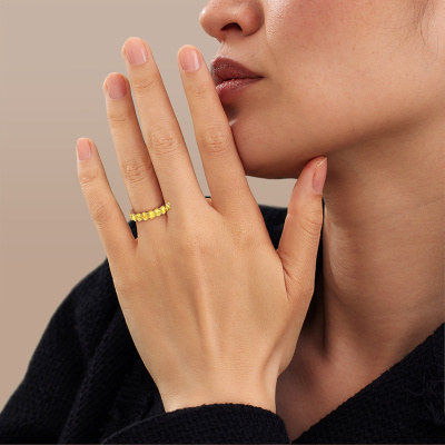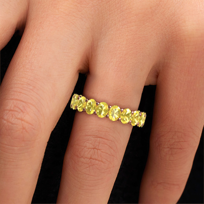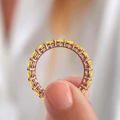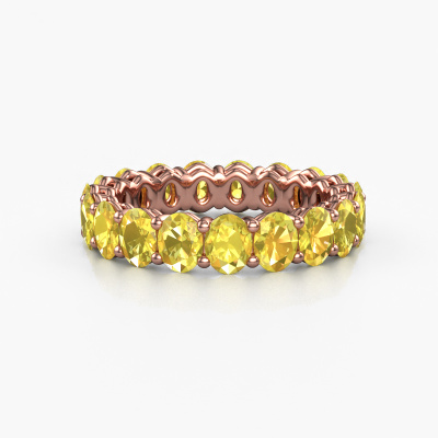 Das ist unser Heddy OVL 3.5x4.5-Ring. Dieser spezielle Typ wird als eternity Ring bezeichnet und ist mit einer durchgehenden Linie von identisch geschliffenen Edelsteinen besetzt. Er ist aus 14 Karat Roségold und mit kleineren 4.5x3.5 mm Gelb Saphir besetzt. Die erstaunlichen Gelb Saphir sind identisch in der Größe und im Ringband platziert. Unsere Gelb Saphir werden sorgfältig ausgewählt, damit sie identisch sind und somit das beste Ergebnis erzielen. Um das beste Ergebnis zu erzielen, positioniert unser Juwelier alle Gelb Saphir von Hand und mit größter Sorgfalt. Unsere Juweliere haben nur ein Ziel, nämlich den perfekten Ring zu kreieren. Deshalb lieben wir, was wir tun. Am Ende bekommen Sie einen atemberaubenden, Fantasie Roségold Vorsteckring mit einer Reihe von Gelb Saphir, die weder Anfang noch Ende zu haben scheinen. Das perfekte Symbol für Ihre unsterbliche Liebe zu ihr! Ist sie nicht eine Schönheit? Durch die Kombination modernster Technik mit uralter Handwerkskunst können wir alle Ringe in unserem eigenen Studio anfertigen. Jedes Schmuckstück wird auf Anfrage gefertigt. Das ist vorteilhaft, weil wir Ihnen dadurch einen Preis anbieten können, den Sie nirgendwo anders finden.Unser Team von talentierten, leidenschaftlichen Designern fügt unserer Online-Kollektion täglich neue Ringe-Designs hinzu. Unser Ziel dabei ist es, Ihnen eine große Vielfalt an Schmuckstücken anbieten zu können. Bitte zögern Sie nicht, ein Angebot anzufordern, wenn Sie spezielle Wünsche für Ihren Ring haben. Wir garantieren Ihnen ein Angebot, das Sie nicht ablehnen können.Um es einfacher zu machen, bieten wir eine kostenlose 30-tägige Rücksendung.