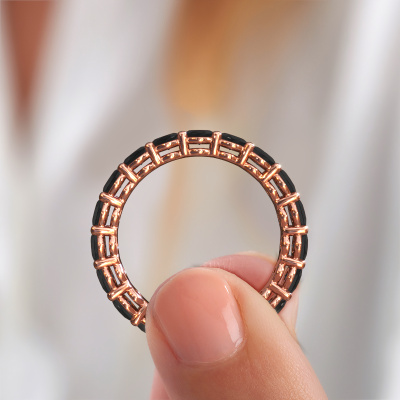 Das ist unser Heddy OVL 3.5x4.5-Ring. Dieser spezielle Typ wird als eternity Ring bezeichnet und ist mit einer durchgehenden Linie von identisch geschliffenen Edelsteinen besetzt. Er ist aus 14 Karat Roségold und mit kleineren 0.252 crt Schwarze Diamanten besetzt. Die erstaunlichen Schwarze Diamanten sind identisch in der Größe und im Ringband platziert. Unsere Schwarze Diamanten werden sorgfältig ausgewählt, damit sie identisch sind und somit das beste Ergebnis erzielen. Um das beste Ergebnis zu erzielen, positioniert unser Juwelier alle Schwarze Diamanten von Hand und mit größter Sorgfalt. Unsere Juweliere haben nur ein Ziel, nämlich den perfekten Ring zu kreieren. Deshalb lieben wir, was wir tun. Am Ende bekommen Sie einen atemberaubenden, Fantasie Roségold Vorsteckring mit einer Reihe von Schwarze Diamanten, die weder Anfang noch Ende zu haben scheinen. Das perfekte Symbol für Ihre unsterbliche Liebe zu ihr! Ist sie nicht eine Schönheit? Durch die Kombination modernster Technik mit uralter Handwerkskunst können wir alle Ringe in unserem eigenen Studio anfertigen. Jedes Schmuckstück wird auf Anfrage gefertigt. Das ist vorteilhaft, weil wir Ihnen dadurch einen Preis anbieten können, den Sie nirgendwo anders finden.Unser Team von talentierten, leidenschaftlichen Designern fügt unserer Online-Kollektion täglich neue Ringe-Designs hinzu. Unser Ziel dabei ist es, Ihnen eine große Vielfalt an Schmuckstücken anbieten zu können. Bitte zögern Sie nicht, ein Angebot anzufordern, wenn Sie spezielle Wünsche für Ihren Ring haben. Wir garantieren Ihnen ein Angebot, das Sie nicht ablehnen können.Um es einfacher zu machen, bieten wir eine kostenlose 30-tägige Rücksendung.