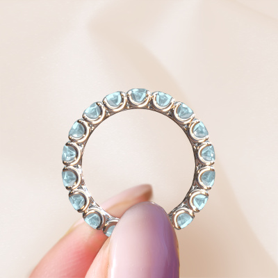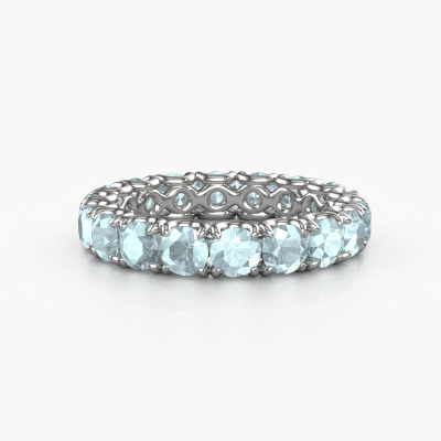 Das ist unser Estee 3.7-Ring. Dieser spezielle Typ wird als eternity Ring bezeichnet und ist mit einer durchgehenden Linie von identisch geschliffenen Edelsteinen besetzt. Er ist aus 14 Karat Weißgold und mit kleineren 3.7 mm Aquamarins besetzt. Die erstaunlichen Aquamarins sind identisch in der Größe und im Ringband platziert. Unsere Aquamarins werden sorgfältig ausgewählt, damit sie identisch sind und somit das beste Ergebnis erzielen. Um das beste Ergebnis zu erzielen, positioniert unser Juwelier alle Aquamarins von Hand und mit größter Sorgfalt. Unsere Juweliere haben nur ein Ziel, nämlich den perfekten Ring zu kreieren. Deshalb lieben wir, was wir tun. Am Ende bekommen Sie einen atemberaubenden, klassische Weißgold Vorsteckring mit einer Reihe von Aquamarins, die weder Anfang noch Ende zu haben scheinen. Das perfekte Symbol für Ihre unsterbliche Liebe zu ihr! Ist sie nicht eine Schönheit? Nach Erhalt Ihrer Bestellung beginnen unsere Goldschmiede mit Leidenschaft den kreativen Prozess und fertigen Ihren Ring in unserem eigenen Studio. Da wir keine großen Lager haben, werden diese Kosten nicht an Sie weitergegeben. Unsere Preisgestaltung ist der Beweis dafür! Wir bieten Schmuck zum niedrigsten Preis, garantiert.Unsere talentierten, leidenschaftlichen Designer fügen unserer Online-Kollektion täglich neue Designs hinzu. Zusammen versuchen sie, eine vielfältige Kollektion feinster Schmuckstücke zu erstellen. Wenn Sie es vorziehen, einen Ring nach Ihrem eigenen Entwurf zu machen, können Sie gerne ein Angebot anfordern. Wir machen Ihnen ein großartiges Angebot, basierend auf Qualität und Preis.Um es einfacher zu machen, bieten wir eine kostenlose 30-tägige Rücksendung.