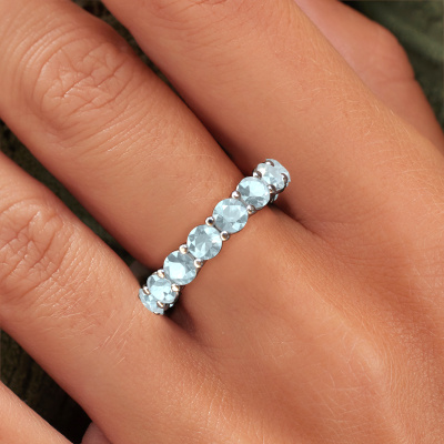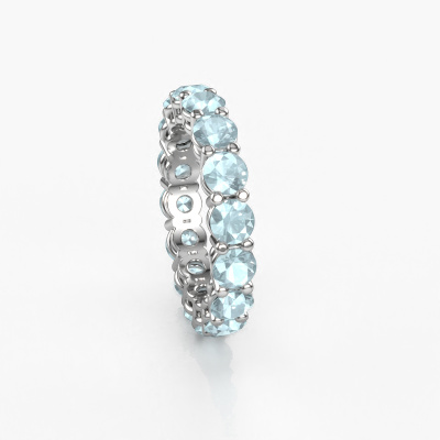 Das ist unser Michelle full 4.0-Ring. Dieser spezielle Typ wird als eternity Ring bezeichnet und ist mit einer durchgehenden Linie von identisch geschliffenen Edelsteinen besetzt. Er ist aus 14 Karat Weißgold und mit kleineren 4 mm Aquamarins besetzt. Die erstaunlichen Aquamarins sind identisch in der Größe und im Ringband platziert. Unsere Aquamarins werden sorgfältig ausgewählt, damit sie identisch sind und somit das beste Ergebnis erzielen. Um das beste Ergebnis zu erzielen, positioniert unser Juwelier alle Aquamarins von Hand und mit größter Sorgfalt. Unsere Juweliere haben nur ein Ziel, nämlich den perfekten Ring zu kreieren. Deshalb lieben wir, was wir tun. Am Ende bekommen Sie einen atemberaubenden, moderne Weißgold Vorsteckring mit einer Reihe von Aquamarins, die weder Anfang noch Ende zu haben scheinen. Das perfekte Symbol für Ihre unsterbliche Liebe zu ihr! Ist sie nicht eine Schönheit? Durch die Kombination modernster Technik mit uralter Handwerkskunst können wir alle Ringe in unserem eigenen Studio anfertigen. Jedes Schmuckstück wird auf Anfrage gefertigt. Das ist vorteilhaft, weil wir Ihnen dadurch einen Preis anbieten können, den Sie nirgendwo anders finden.Unsere talentierten, leidenschaftlichen Designer fügen unserer Online-Kollektion täglich neue Designs hinzu. Zusammen versuchen sie, eine vielfältige Kollektion feinster Schmuckstücke zu erstellen. Wenn Sie es vorziehen, einen Ring nach Ihrem eigenen Entwurf zu machen, können Sie gerne ein Angebot anfordern. Wir machen Ihnen ein großartiges Angebot, basierend auf Qualität und Preis.Um es einfacher zu machen, bieten wir eine kostenlose 30-tägige Rücksendung.