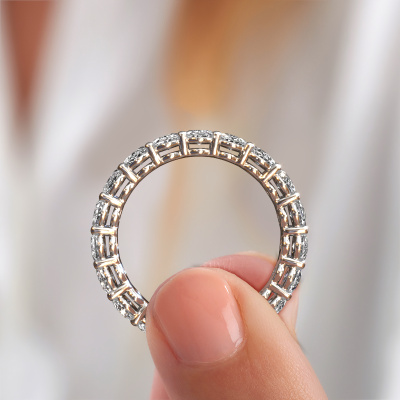 Das ist unser Heddy OVL 3.5x4.5-Ring. Dieser spezielle Typ wird als eternity Ring bezeichnet und ist mit einer durchgehenden Linie von identisch geschliffenen Edelsteinen besetzt. Er ist aus 14 Karat Weißgold und mit kleineren 0.21 crt Diamanten besetzt. Die erstaunlichen Diamanten sind identisch in der Größe und im Ringband platziert. Unsere Diamanten werden sorgfältig ausgewählt, damit sie identisch sind und somit das beste Ergebnis erzielen. Um das beste Ergebnis zu erzielen, positioniert unser Juwelier alle Diamanten von Hand und mit größter Sorgfalt. Unsere Juweliere haben nur ein Ziel, nämlich den perfekten Ring zu kreieren. Deshalb lieben wir, was wir tun. Am Ende bekommen Sie einen atemberaubenden, Fantasie Weißgold Vorsteckring mit einer Reihe von Diamanten, die weder Anfang noch Ende zu haben scheinen. Das perfekte Symbol für Ihre unsterbliche Liebe zu ihr! Ist sie nicht eine Schönheit? Durch die Kombination modernster Technik mit uralter Handwerkskunst können wir alle Ringe in unserem eigenen Studio anfertigen. Jedes Schmuckstück wird auf Anfrage gefertigt. Das ist vorteilhaft, weil wir Ihnen dadurch einen Preis anbieten können, den Sie nirgendwo anders finden.Unser Team von talentierten, leidenschaftlichen Designern fügt unserer Online-Kollektion täglich neue Ringe-Designs hinzu. Unser Ziel dabei ist es, Ihnen eine große Vielfalt an Schmuckstücken anbieten zu können. Bitte zögern Sie nicht, ein Angebot anzufordern, wenn Sie spezielle Wünsche für Ihren Ring haben. Wir garantieren Ihnen ein Angebot, das Sie nicht ablehnen können.Um es einfacher zu machen, bieten wir eine kostenlose 30-tägige Rücksendung.