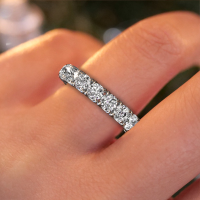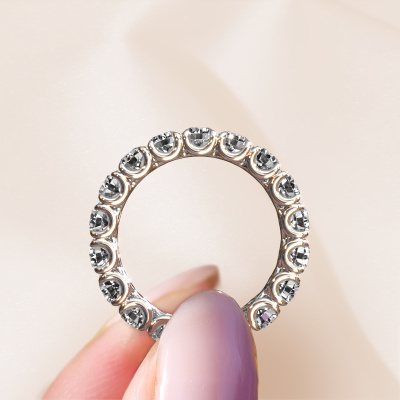 Das ist unser Estee 3.7-Ring. Dieser spezielle Typ wird als eternity Ring bezeichnet und ist mit einer durchgehenden Linie von identisch geschliffenen Edelsteinen besetzt. Er ist aus 14 Karat Weißgold und mit kleineren 0.20 crt Diamanten besetzt. Die erstaunlichen Diamanten sind identisch in der Größe und im Ringband platziert. Unsere Diamanten werden sorgfältig ausgewählt, damit sie identisch sind und somit das beste Ergebnis erzielen. Um das beste Ergebnis zu erzielen, positioniert unser Juwelier alle Diamanten von Hand und mit größter Sorgfalt. Unsere Juweliere haben nur ein Ziel, nämlich den perfekten Ring zu kreieren. Deshalb lieben wir, was wir tun. Am Ende bekommen Sie einen atemberaubenden, klassische Weißgold Vorsteckring mit einer Reihe von Diamanten, die weder Anfang noch Ende zu haben scheinen. Das perfekte Symbol für Ihre unsterbliche Liebe zu ihr! Ist sie nicht eine Schönheit? Nach Erhalt Ihrer Bestellung beginnen unsere Goldschmiede mit Leidenschaft den kreativen Prozess und fertigen Ihren Ring in unserem eigenen Studio. Da wir keine großen Lager haben, werden diese Kosten nicht an Sie weitergegeben. Unsere Preisgestaltung ist der Beweis dafür! Wir bieten Schmuck zum niedrigsten Preis, garantiert.Unsere talentierten, leidenschaftlichen Designer fügen unserer Online-Kollektion täglich neue Designs hinzu. Zusammen versuchen sie, eine vielfältige Kollektion feinster Schmuckstücke zu erstellen. Wenn Sie es vorziehen, einen Ring nach Ihrem eigenen Entwurf zu machen, können Sie gerne ein Angebot anfordern. Wir machen Ihnen ein großartiges Angebot, basierend auf Qualität und Preis.Um es einfacher zu machen, bieten wir eine kostenlose 30-tägige Rücksendung.