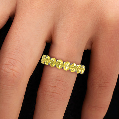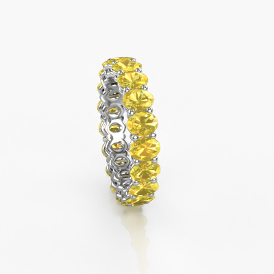 Das ist unser Heddy OVL 3.5x4.5-Ring. Dieser spezielle Typ wird als eternity Ring bezeichnet und ist mit einer durchgehenden Linie von identisch geschliffenen Edelsteinen besetzt. Er ist aus 14 Karat Weißgold und mit kleineren 4.5x3.5 mm Gelb Saphir besetzt. Die erstaunlichen Gelb Saphir sind identisch in der Größe und im Ringband platziert. Unsere Gelb Saphir werden sorgfältig ausgewählt, damit sie identisch sind und somit das beste Ergebnis erzielen. Um das beste Ergebnis zu erzielen, positioniert unser Juwelier alle Gelb Saphir von Hand und mit größter Sorgfalt. Unsere Juweliere haben nur ein Ziel, nämlich den perfekten Ring zu kreieren. Deshalb lieben wir, was wir tun. Am Ende bekommen Sie einen atemberaubenden, Fantasie Weißgold Vorsteckring mit einer Reihe von Gelb Saphir, die weder Anfang noch Ende zu haben scheinen. Das perfekte Symbol für Ihre unsterbliche Liebe zu ihr! Ist sie nicht eine Schönheit? Durch die Kombination modernster Technik mit uralter Handwerkskunst können wir alle Ringe in unserem eigenen Studio anfertigen. Jedes Schmuckstück wird auf Anfrage gefertigt. Das ist vorteilhaft, weil wir Ihnen dadurch einen Preis anbieten können, den Sie nirgendwo anders finden.Unser Team von talentierten, leidenschaftlichen Designern fügt unserer Online-Kollektion täglich neue Ringe-Designs hinzu. Unser Ziel dabei ist es, Ihnen eine große Vielfalt an Schmuckstücken anbieten zu können. Bitte zögern Sie nicht, ein Angebot anzufordern, wenn Sie spezielle Wünsche für Ihren Ring haben. Wir garantieren Ihnen ein Angebot, das Sie nicht ablehnen können.Um es einfacher zu machen, bieten wir eine kostenlose 30-tägige Rücksendung.