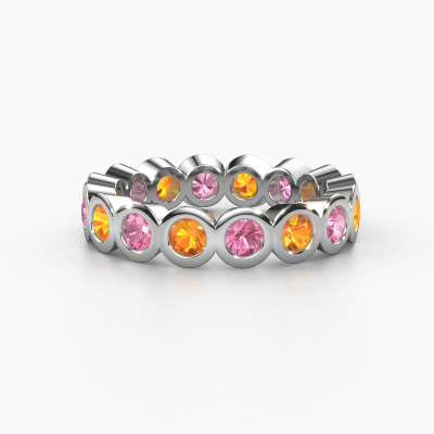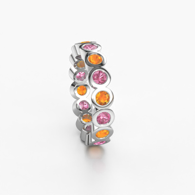 Das ist unser Edwina 3-Ring. Dieser spezielle Typ wird als eternity Ring bezeichnet und ist mit einer durchgehenden Linie von identisch geschliffenen Edelsteinen besetzt. Er ist aus 14 Karat Weißgold und mit kleineren 3 mm Pink Saphir besetzt. Die erstaunlichen Pink Saphir sind identisch in der Größe und im Ringband platziert. Unsere Pink Saphir werden sorgfältig ausgewählt, damit sie identisch sind und somit das beste Ergebnis erzielen. Um das beste Ergebnis zu erzielen, positioniert unser Juwelier alle Pink Saphir von Hand und mit größter Sorgfalt. Unsere Juweliere haben nur ein Ziel, nämlich den perfekten Ring zu kreieren. Deshalb lieben wir, was wir tun. Am Ende bekommen Sie einen atemberaubenden, trendige Weißgold Vorsteckring mit einer Reihe von Pink Saphir, die weder Anfang noch Ende zu haben scheinen. Das perfekte Symbol für Ihre unsterbliche Liebe zu ihr! Ist sie nicht eine Schönheit? Nach Erhalt Ihrer Bestellung beginnen unsere Goldschmiede mit Leidenschaft den kreativen Prozess und fertigen Ihren Ring in unserem eigenen Studio. Da wir keine großen Lager haben, werden diese Kosten nicht an Sie weitergegeben. Unsere Preisgestaltung ist der Beweis dafür! Wir bieten Schmuck zum niedrigsten Preis, garantiert.Unser Team von talentierten, leidenschaftlichen Designern fügt unserer Online-Kollektion täglich neue Ring-Designs hinzu. Unser Ziel dabei ist es, Ihnen eine große Vielfalt an Schmuckstücken anbieten zu können. Bitte zögern Sie nicht, ein Angebot anzufordern, wenn Sie spezielle Wünsche für Ihren Ring haben. Wir garantieren Ihnen ein Angebot, das Sie nicht ablehnen können.Um es einfacher zu machen, bieten wir eine kostenlose 30-tägige Rücksendung.