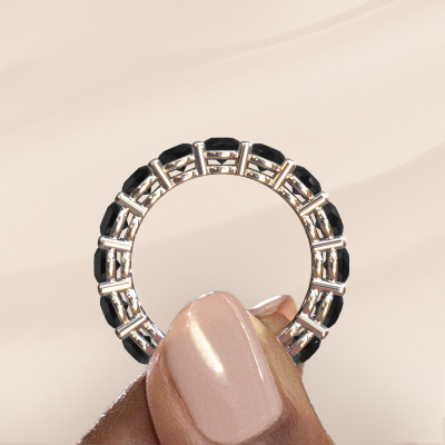 Das ist unser Michelle full 4.0-Ring. Dieser spezielle Typ wird als eternity Ring bezeichnet und ist mit einer durchgehenden Linie von identisch geschliffenen Edelsteinen besetzt. Er ist aus 14 Karat Weißgold und mit kleineren 0.30 crt Schwarze Diamanten besetzt. Die erstaunlichen Schwarze Diamanten sind identisch in der Größe und im Ringband platziert. Unsere Schwarze Diamanten werden sorgfältig ausgewählt, damit sie identisch sind und somit das beste Ergebnis erzielen. Um das beste Ergebnis zu erzielen, positioniert unser Juwelier alle Schwarze Diamanten von Hand und mit größter Sorgfalt. Unsere Juweliere haben nur ein Ziel, nämlich den perfekten Ring zu kreieren. Deshalb lieben wir, was wir tun. Am Ende bekommen Sie einen atemberaubenden, moderne Weißgold Vorsteckring mit einer Reihe von Schwarze Diamanten, die weder Anfang noch Ende zu haben scheinen. Das perfekte Symbol für Ihre unsterbliche Liebe zu ihr! Ist sie nicht eine Schönheit? Durch die Kombination modernster Technik mit uralter Handwerkskunst können wir alle Ringe in unserem eigenen Studio anfertigen. Jedes Schmuckstück wird auf Anfrage gefertigt. Das ist vorteilhaft, weil wir Ihnen dadurch einen Preis anbieten können, den Sie nirgendwo anders finden.Unsere talentierten, leidenschaftlichen Designer fügen unserer Online-Kollektion täglich neue Designs hinzu. Zusammen versuchen sie, eine vielfältige Kollektion feinster Schmuckstücke zu erstellen. Wenn Sie es vorziehen, einen Ring nach Ihrem eigenen Entwurf zu machen, können Sie gerne ein Angebot anfordern. Wir machen Ihnen ein großartiges Angebot, basierend auf Qualität und Preis.Um es einfacher zu machen, bieten wir eine kostenlose 30-tägige Rücksendung.