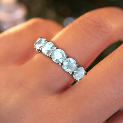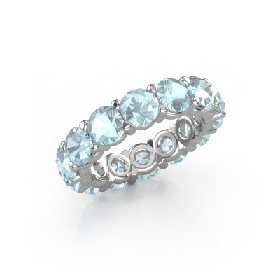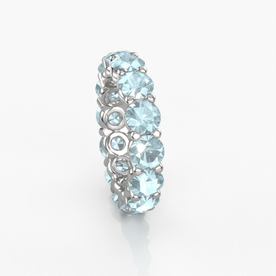 Das ist unser Heddy rnd 5.0-Ring. Dieser spezielle Typ wird als eternity Ring bezeichnet und ist mit einer durchgehenden Linie von identisch geschliffenen Edelsteinen besetzt. Er ist aus 14 Karat Weißgold und mit kleineren 5 mm Aquamarins besetzt. Die erstaunlichen Aquamarins sind identisch in der Größe und im Ringband platziert. Unsere Aquamarins werden sorgfältig ausgewählt, damit sie identisch sind und somit das beste Ergebnis erzielen. Um das beste Ergebnis zu erzielen, positioniert unser Juwelier alle Aquamarins von Hand und mit größter Sorgfalt. Unsere Juweliere haben nur ein Ziel, nämlich den perfekten Ring zu kreieren. Deshalb lieben wir, was wir tun. Am Ende bekommen Sie einen atemberaubenden, exklusive Weißgold Ring mit einer Reihe von Aquamarins, die weder Anfang noch Ende zu haben scheinen. Das perfekte Symbol für Ihre unsterbliche Liebe zu ihr! Ist sie nicht eine Schönheit? Durch die Kombination modernster Technik mit uralter Handwerkskunst können wir alle Ringe in unserem eigenen Studio anfertigen. Jedes Schmuckstück wird auf Anfrage gefertigt. Das ist vorteilhaft, weil wir Ihnen dadurch einen Preis anbieten können, den Sie nirgendwo anders finden.