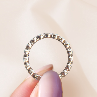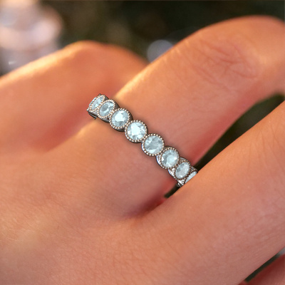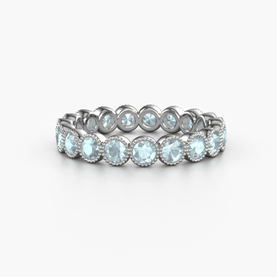 Das ist unser Mariam 0.07-Ring. Dieser spezielle Typ wird als eternity Ring bezeichnet und ist mit einer durchgehenden Linie von identisch geschliffenen Edelsteinen besetzt. Er ist aus 14 Karat Weißgold und mit kleineren 2.7 mm Aquamarins besetzt. Die erstaunlichen Aquamarins sind identisch in der Größe und im Ringband platziert. Unsere Aquamarins werden sorgfältig ausgewählt, damit sie identisch sind und somit das beste Ergebnis erzielen. Um das beste Ergebnis zu erzielen, positioniert unser Juwelier alle Aquamarins von Hand und mit größter Sorgfalt. Unsere Juweliere haben nur ein Ziel, nämlich den perfekten Ring zu kreieren. Deshalb lieben wir, was wir tun. Am Ende bekommen Sie einen atemberaubenden, trendige Weißgold Ring mit einer Reihe von Aquamarins, die weder Anfang noch Ende zu haben scheinen. Das perfekte Symbol für Ihre unsterbliche Liebe zu ihr! Ist sie nicht eine Schönheit? Nach Erhalt Ihrer Bestellung beginnen unsere Goldschmiede mit Leidenschaft den kreativen Prozess und fertigen Ihren Ring in unserem eigenen Studio. Da wir keine großen Lager haben, werden diese Kosten nicht an Sie weitergegeben. Unsere Preisgestaltung ist der Beweis dafür! Wir bieten Schmuck zum niedrigsten Preis, garantiert.Unsere talentierten, leidenschaftlichen Designer fügen unserer Online-Kollektion täglich neue Designs hinzu. Zusammen versuchen sie, eine vielfältige Kollektion feinster Schmuckstücke zu erstellen. Wenn Sie es vorziehen, einen Ring nach Ihrem eigenen Entwurf zu machen, können Sie gerne ein Angebot anfordern. Wir machen Ihnen ein großartiges Angebot, basierend auf Qualität und Preis.Um es einfacher zu machen, bieten wir eine kostenlose 30-tägige Rücksendung.