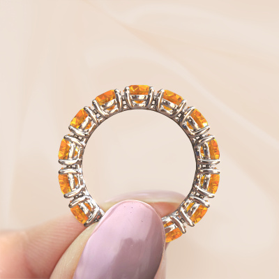 Das ist unser Vivienne 4.7-Ring. Dieser spezielle Typ wird als eternity Ring bezeichnet und ist mit einer durchgehenden Linie von identisch geschliffenen Edelsteinen besetzt. Er ist aus 14 Karat Weißgold und mit kleineren 4.7 mm Citrin besetzt. Die erstaunlichen Citrin sind identisch in der Größe und im Ringband platziert. Unsere Citrin werden sorgfältig ausgewählt, damit sie identisch sind und somit das beste Ergebnis erzielen. Um das beste Ergebnis zu erzielen, positioniert unser Juwelier alle Citrin von Hand und mit größter Sorgfalt. Unsere Juweliere haben nur ein Ziel, nämlich den perfekten Ring zu kreieren. Deshalb lieben wir, was wir tun. Am Ende bekommen Sie einen atemberaubenden, exklusive Weißgold Ring mit einer Reihe von Citrin, die weder Anfang noch Ende zu haben scheinen. Das perfekte Symbol für Ihre unsterbliche Liebe zu ihr! Ist sie nicht eine Schönheit? Nach Erhalt Ihrer Bestellung beginnen unsere Goldschmiede mit Leidenschaft den kreativen Prozess und fertigen Ihren Ring in unserem eigenen Studio. Da wir keine großen Lager haben, werden diese Kosten nicht an Sie weitergegeben. Unsere Preisgestaltung ist der Beweis dafür! Wir bieten Schmuck zum niedrigsten Preis, garantiert.Unsere talentierten, leidenschaftlichen Designer fügen unserer Online-Kollektion täglich neue Designs hinzu. Zusammen versuchen sie, eine vielfältige Kollektion feinster Schmuckstücke zu erstellen. Wenn Sie es vorziehen, einen Ring nach Ihrem eigenen Entwurf zu machen, können Sie gerne ein Angebot anfordern. Wir machen Ihnen ein großartiges Angebot, basierend auf Qualität und Preis.Um es einfacher zu machen, bieten wir eine kostenlose 30-tägige Rücksendung.