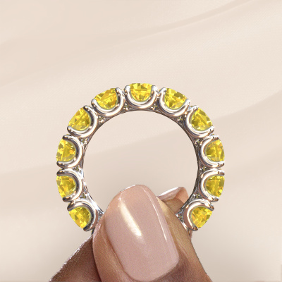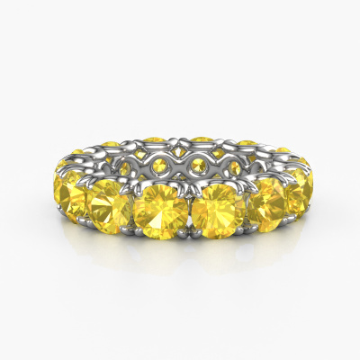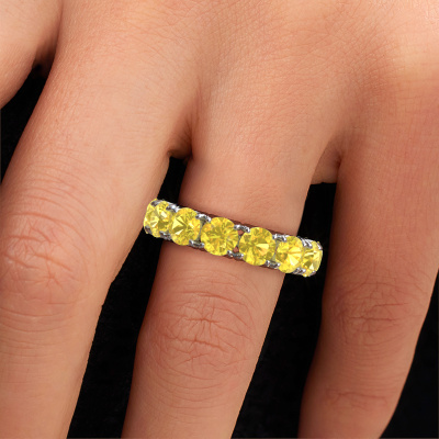 Das ist unser Estee 5.0-Ring. Dieser spezielle Typ wird als eternity Ring bezeichnet und ist mit einer durchgehenden Linie von identisch geschliffenen Edelsteinen besetzt. Er ist aus 14 Karat Weißgold und mit kleineren 5 mm Gelb Saphir besetzt. Die erstaunlichen Gelb Saphir sind identisch in der Größe und im Ringband platziert. Unsere Gelb Saphir werden sorgfältig ausgewählt, damit sie identisch sind und somit das beste Ergebnis erzielen. Um das beste Ergebnis zu erzielen, positioniert unser Juwelier alle Gelb Saphir von Hand und mit größter Sorgfalt. Unsere Juweliere haben nur ein Ziel, nämlich den perfekten Ring zu kreieren. Deshalb lieben wir, was wir tun. Am Ende bekommen Sie einen atemberaubenden, exklusive Weißgold Ring mit einer Reihe von Gelb Saphir, die weder Anfang noch Ende zu haben scheinen. Das perfekte Symbol für Ihre unsterbliche Liebe zu ihr! Ist sie nicht eine Schönheit? Haben Sie ein bestimmtes Budget? Sie können uns gerne kontaktieren, damit wir Ihre Optionen besprechen können. Wir bieten unsere Ringe zum garantiert besten Preis, denn wir fertigen sie auf Bestellung. Solche Preise finden Sie nirgendwo anders!Unsere talentierten, leidenschaftlichen Designer fügen unserer Online-Kollektion täglich neue Designs hinzu. Zusammen versuchen sie, eine vielfältige Kollektion feinster Schmuckstücke zu erstellen. Wenn Sie es vorziehen, einen Ring nach Ihrem eigenen Entwurf zu machen, können Sie gerne ein Angebot anfordern. Wir machen Ihnen ein großartiges Angebot, basierend auf Qualität und Preis.Um es einfacher zu machen, bieten wir eine kostenlose 30-tägige Rücksendung.