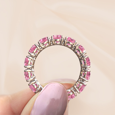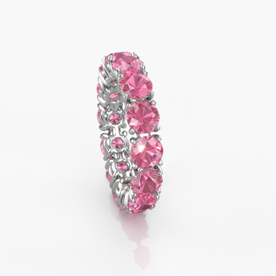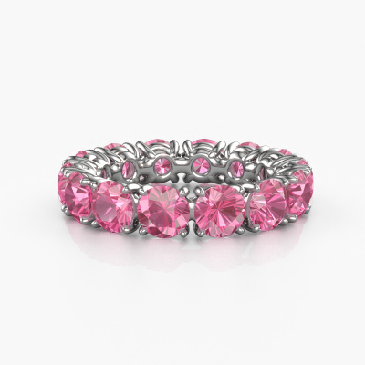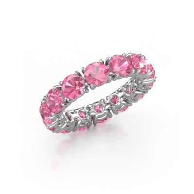 Das ist unser Vivienne 4.7-Ring. Dieser spezielle Typ wird als eternity Ring bezeichnet und ist mit einer durchgehenden Linie von identisch geschliffenen Edelsteinen besetzt. Er ist aus 14 Karat Weißgold und mit kleineren 4.7 mm Pink Saphir besetzt. Die erstaunlichen Pink Saphir sind identisch in der Größe und im Ringband platziert. Unsere Pink Saphir werden sorgfältig ausgewählt, damit sie identisch sind und somit das beste Ergebnis erzielen. Um das beste Ergebnis zu erzielen, positioniert unser Juwelier alle Pink Saphir von Hand und mit größter Sorgfalt. Unsere Juweliere haben nur ein Ziel, nämlich den perfekten Ring zu kreieren. Deshalb lieben wir, was wir tun. Am Ende bekommen Sie einen atemberaubenden, exklusive Weißgold Ring mit einer Reihe von Pink Saphir, die weder Anfang noch Ende zu haben scheinen. Das perfekte Symbol für Ihre unsterbliche Liebe zu ihr! Ist sie nicht eine Schönheit? Nach Erhalt Ihrer Bestellung beginnen unsere Goldschmiede mit Leidenschaft den kreativen Prozess und fertigen Ihren Ring in unserem eigenen Studio. Da wir keine großen Lager haben, werden diese Kosten nicht an Sie weitergegeben. Unsere Preisgestaltung ist der Beweis dafür! Wir bieten Schmuck zum niedrigsten Preis, garantiert.Unsere talentierten, leidenschaftlichen Designer fügen unserer Online-Kollektion täglich neue Designs hinzu. Zusammen versuchen sie, eine vielfältige Kollektion feinster Schmuckstücke zu erstellen. Wenn Sie es vorziehen, einen Ring nach Ihrem eigenen Entwurf zu machen, können Sie gerne ein Angebot anfordern. Wir machen Ihnen ein großartiges Angebot, basierend auf Qualität und Preis.Um es einfacher zu machen, bieten wir eine kostenlose 30-tägige Rücksendung.