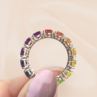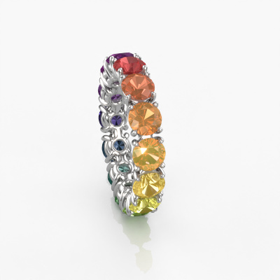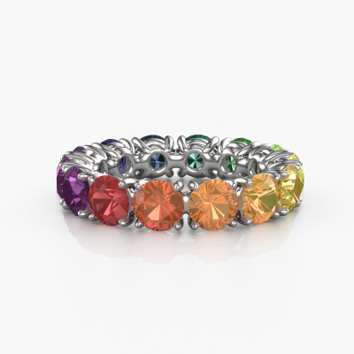 Das ist unser Vivienne 4.7-Ring. Dieser spezielle Typ wird als eternity Ring bezeichnet und ist mit einer durchgehenden Linie von identisch geschliffenen Edelsteinen besetzt. Er ist aus 14 Karat Weißgold und mit kleineren 4.7 mm Rainbow Saphir 1 besetzt. Die erstaunlichen Rainbow Saphir 1 sind identisch in der Größe und im Ringband platziert. Unsere Rainbow Saphir 1 werden sorgfältig ausgewählt, damit sie identisch sind und somit das beste Ergebnis erzielen. Um das beste Ergebnis zu erzielen, positioniert unser Juwelier alle Rainbow Saphir 1 von Hand und mit größter Sorgfalt. Unsere Juweliere haben nur ein Ziel, nämlich den perfekten Ring zu kreieren. Deshalb lieben wir, was wir tun. Am Ende bekommen Sie einen atemberaubenden, exklusive Weißgold Ring mit einer Reihe von Rainbow Saphir 1, die weder Anfang noch Ende zu haben scheinen. Das perfekte Symbol für Ihre unsterbliche Liebe zu ihr! Ist sie nicht eine Schönheit? Nach Erhalt Ihrer Bestellung beginnen unsere Goldschmiede mit Leidenschaft den kreativen Prozess und fertigen Ihren Ring in unserem eigenen Studio. Da wir keine großen Lager haben, werden diese Kosten nicht an Sie weitergegeben. Unsere Preisgestaltung ist der Beweis dafür! Wir bieten Schmuck zum niedrigsten Preis, garantiert.Unsere talentierten, leidenschaftlichen Designer fügen unserer Online-Kollektion täglich neue Designs hinzu. Zusammen versuchen sie, eine vielfältige Kollektion feinster Schmuckstücke zu erstellen. Wenn Sie es vorziehen, einen Ring nach Ihrem eigenen Entwurf zu machen, können Sie gerne ein Angebot anfordern. Wir machen Ihnen ein großartiges Angebot, basierend auf Qualität und Preis.Um es einfacher zu machen, bieten wir eine kostenlose 30-tägige Rücksendung.