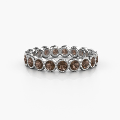Das ist unser Mariam 0.07-Ring. Dieser spezielle Typ wird als eternity Ring bezeichnet und ist mit einer durchgehenden Linie von identisch geschliffenen Edelsteinen besetzt. Er ist aus 14 Karat Weißgold und mit kleineren 2.7 mm Rauchquarz besetzt. Die erstaunlichen Rauchquarz sind identisch in der Größe und im Ringband platziert. Unsere Rauchquarz werden sorgfältig ausgewählt, damit sie identisch sind und somit das beste Ergebnis erzielen. Um das beste Ergebnis zu erzielen, positioniert unser Juwelier alle Rauchquarz von Hand und mit größter Sorgfalt. Unsere Juweliere haben nur ein Ziel, nämlich den perfekten Ring zu kreieren. Deshalb lieben wir, was wir tun. Am Ende bekommen Sie einen atemberaubenden, trendige Weißgold Ring mit einer Reihe von Rauchquarz, die weder Anfang noch Ende zu haben scheinen. Das perfekte Symbol für Ihre unsterbliche Liebe zu ihr! Ist sie nicht eine Schönheit? Nach Erhalt Ihrer Bestellung beginnen unsere Goldschmiede mit Leidenschaft den kreativen Prozess und fertigen Ihren Ring in unserem eigenen Studio. Da wir keine großen Lager haben, werden diese Kosten nicht an Sie weitergegeben. Unsere Preisgestaltung ist der Beweis dafür! Wir bieten Schmuck zum niedrigsten Preis, garantiert.Unsere talentierten, leidenschaftlichen Designer fügen unserer Online-Kollektion täglich neue Designs hinzu. Zusammen versuchen sie, eine vielfältige Kollektion feinster Schmuckstücke zu erstellen. Wenn Sie es vorziehen, einen Ring nach Ihrem eigenen Entwurf zu machen, können Sie gerne ein Angebot anfordern. Wir machen Ihnen ein großartiges Angebot, basierend auf Qualität und Preis.Um es einfacher zu machen, bieten wir eine kostenlose 30-tägige Rücksendung.