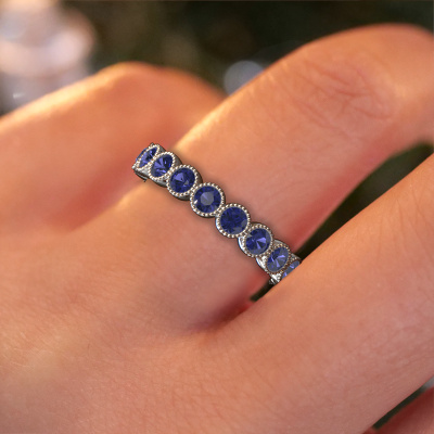 Das ist unser Mariam 0.07-Ring. Dieser spezielle Typ wird als eternity Ring bezeichnet und ist mit einer durchgehenden Linie von identisch geschliffenen Edelsteinen besetzt. Er ist aus 14 Karat Weißgold und mit kleineren 2.7 mm Saphir besetzt. Die erstaunlichen Saphir sind identisch in der Größe und im Ringband platziert. Unsere Saphir werden sorgfältig ausgewählt, damit sie identisch sind und somit das beste Ergebnis erzielen. Um das beste Ergebnis zu erzielen, positioniert unser Juwelier alle Saphir von Hand und mit größter Sorgfalt. Unsere Juweliere haben nur ein Ziel, nämlich den perfekten Ring zu kreieren. Deshalb lieben wir, was wir tun. Am Ende bekommen Sie einen atemberaubenden, trendige Weißgold Ring mit einer Reihe von Saphir, die weder Anfang noch Ende zu haben scheinen. Das perfekte Symbol für Ihre unsterbliche Liebe zu ihr! Ist sie nicht eine Schönheit? Nach Erhalt Ihrer Bestellung beginnen unsere Goldschmiede mit Leidenschaft den kreativen Prozess und fertigen Ihren Ring in unserem eigenen Studio. Da wir keine großen Lager haben, werden diese Kosten nicht an Sie weitergegeben. Unsere Preisgestaltung ist der Beweis dafür! Wir bieten Schmuck zum niedrigsten Preis, garantiert.Unsere talentierten, leidenschaftlichen Designer fügen unserer Online-Kollektion täglich neue Designs hinzu. Zusammen versuchen sie, eine vielfältige Kollektion feinster Schmuckstücke zu erstellen. Wenn Sie es vorziehen, einen Ring nach Ihrem eigenen Entwurf zu machen, können Sie gerne ein Angebot anfordern. Wir machen Ihnen ein großartiges Angebot, basierend auf Qualität und Preis.Um es einfacher zu machen, bieten wir eine kostenlose 30-tägige Rücksendung.