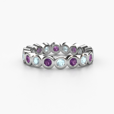 Das ist unser Edwina 2-Ring. Dieser spezielle Typ wird als eternity Ring bezeichnet und ist mit einer durchgehenden Linie von identisch geschliffenen Edelsteinen besetzt. Er ist aus 14 Karat Weißgold und mit kleineren 2.5 mm Amethysten besetzt. Die erstaunlichen Amethysten sind identisch in der Größe und im Ringband platziert. Unsere Amethysten werden sorgfältig ausgewählt, damit sie identisch sind und somit das beste Ergebnis erzielen. Um das beste Ergebnis zu erzielen, positioniert unser Juwelier alle Amethysten von Hand und mit größter Sorgfalt. Unsere Juweliere haben nur ein Ziel, nämlich den perfekten Ring zu kreieren. Deshalb lieben wir, was wir tun. Am Ende bekommen Sie einen atemberaubenden, trendige Weißgold Vorsteckring mit einer Reihe von Amethysten, die weder Anfang noch Ende zu haben scheinen. Das perfekte Symbol für Ihre unsterbliche Liebe zu ihr! Ist sie nicht eine Schönheit? Mit unserer modernen Technik können wir Schmuckstücke von höchster Qualität mit größter Sorgfalt für Sie entwerfen und anpassen. Unsere Ringe sind immer um 30 Prozent günstiger als bei anderen Juwelieren. Wir fertigen Ringe auf Bestellung, also müssen wir keine großen Lager unterhalten. Wenn Sie ein bestimmtes Budget haben, beraten wir Sie gerne entsprechend.Unsere talentierten, leidenschaftlichen Designer fügen unserer Online-Kollektion täglich neue Designs hinzu. Zusammen versuchen sie, eine vielfältige Kollektion feinster Schmuckstücke zu erstellen. Wenn Sie es vorziehen, einen Ring nach Ihrem eigenen Entwurf zu machen, können Sie gerne ein Angebot anfordern. Wir machen Ihnen ein großartiges Angebot, basierend auf Qualität und Preis.Um es einfacher zu machen, bieten wir eine kostenlose 30-tägige Rücksendung.