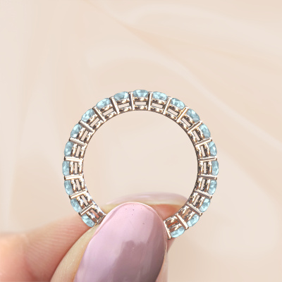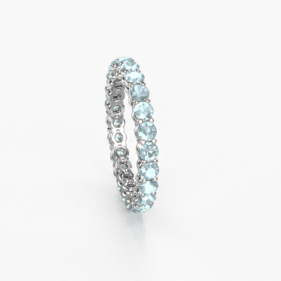Das ist unser Michelle full 2.7-Ring. Dieser spezielle Typ wird als eternity Ring bezeichnet und ist mit einer durchgehenden Linie von identisch geschliffenen Edelsteinen besetzt. Er ist aus 14 Karat Weißgold und mit kleineren 2.7 mm Aquamarins besetzt. Die erstaunlichen Aquamarins sind identisch in der Größe und im Ringband platziert. Unsere Aquamarins werden sorgfältig ausgewählt, damit sie identisch sind und somit das beste Ergebnis erzielen. Um das beste Ergebnis zu erzielen, positioniert unser Juwelier alle Aquamarins von Hand und mit größter Sorgfalt. Unsere Juweliere haben nur ein Ziel, nämlich den perfekten Ring zu kreieren. Deshalb lieben wir, was wir tun. Am Ende bekommen Sie einen atemberaubenden, klassische Weißgold Vorsteckring mit einer Reihe von Aquamarins, die weder Anfang noch Ende zu haben scheinen. Das perfekte Symbol für Ihre unsterbliche Liebe zu ihr! Ist sie nicht eine Schönheit? Durch die Kombination modernster Technik mit uralter Handwerkskunst können wir alle Ringe in unserem eigenen Studio anfertigen. Jedes Schmuckstück wird auf Anfrage gefertigt. Das ist vorteilhaft, weil wir Ihnen dadurch einen Preis anbieten können, den Sie nirgendwo anders finden.Unsere Online-Kollektion wird täglich um neue Schmuckdesigns ergänzt. Unser Team von leidenschaftlichen Designern ist bemüht, außergewöhnliche und vielfältige Designs zu kreieren. Haben Sie einen Ring gesehen, der Ihnen gefällt? Setzen Sie sich mit uns in Verbindung. Basierend auf einem guten Preis/Leistungsverhältnis machen wir Ihnen ein Angebot, das Sie nicht ablehnen können!Um es einfacher zu machen, bieten wir eine kostenlose 30-tägige Rücksendung.