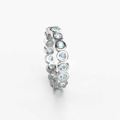 Das ist unser Edwina 2-Ring. Dieser spezielle Typ wird als eternity Ring bezeichnet und ist mit einer durchgehenden Linie von identisch geschliffenen Edelsteinen besetzt. Er ist aus 14 Karat Weißgold und mit kleineren 2.5 mm Aquamarins besetzt. Die erstaunlichen Aquamarins sind identisch in der Größe und im Ringband platziert. Unsere Aquamarins werden sorgfältig ausgewählt, damit sie identisch sind und somit das beste Ergebnis erzielen. Um das beste Ergebnis zu erzielen, positioniert unser Juwelier alle Aquamarins von Hand und mit größter Sorgfalt. Unsere Juweliere haben nur ein Ziel, nämlich den perfekten Ring zu kreieren. Deshalb lieben wir, was wir tun. Am Ende bekommen Sie einen atemberaubenden, trendige Weißgold Vorsteckring mit einer Reihe von Aquamarins, die weder Anfang noch Ende zu haben scheinen. Das perfekte Symbol für Ihre unsterbliche Liebe zu ihr! Ist sie nicht eine Schönheit? Mit unserer modernen Technik können wir Schmuckstücke von höchster Qualität mit größter Sorgfalt für Sie entwerfen und anpassen. Unsere Ringe sind immer um 30 Prozent günstiger als bei anderen Juwelieren. Wir fertigen Ringe auf Bestellung, also müssen wir keine großen Lager unterhalten. Wenn Sie ein bestimmtes Budget haben, beraten wir Sie gerne entsprechend.Unsere talentierten, leidenschaftlichen Designer fügen unserer Online-Kollektion täglich neue Designs hinzu. Zusammen versuchen sie, eine vielfältige Kollektion feinster Schmuckstücke zu erstellen. Wenn Sie es vorziehen, einen Ring nach Ihrem eigenen Entwurf zu machen, können Sie gerne ein Angebot anfordern. Wir machen Ihnen ein großartiges Angebot, basierend auf Qualität und Preis.Um es einfacher zu machen, bieten wir eine kostenlose 30-tägige Rücksendung.