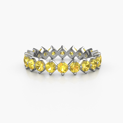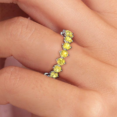 Das ist unser Janie 3.0mm-Ring. Dieser spezielle Typ wird als eternity Ring bezeichnet und ist mit einer durchgehenden Linie von identisch geschliffenen Edelsteinen besetzt. Er ist aus 14 Karat Weißgold und mit kleineren 3 mm Gelb Saphir besetzt. Die erstaunlichen Gelb Saphir sind identisch in der Größe und im Ringband platziert. Unsere Gelb Saphir werden sorgfältig ausgewählt, damit sie identisch sind und somit das beste Ergebnis erzielen. Um das beste Ergebnis zu erzielen, positioniert unser Juwelier alle Gelb Saphir von Hand und mit größter Sorgfalt. Unsere Juweliere haben nur ein Ziel, nämlich den perfekten Ring zu kreieren. Deshalb lieben wir, was wir tun. Am Ende bekommen Sie einen atemberaubenden, Fantasie Weißgold Vorsteckring mit einer Reihe von Gelb Saphir, die weder Anfang noch Ende zu haben scheinen. Das perfekte Symbol für Ihre unsterbliche Liebe zu ihr! Ist sie nicht eine Schönheit? Durch die Kombination modernster Technik mit uralter Handwerkskunst können wir alle Ringe in unserem eigenen Studio anfertigen. Jedes Schmuckstück wird auf Anfrage gefertigt. Das ist vorteilhaft, weil wir Ihnen dadurch einen Preis anbieten können, den Sie nirgendwo anders finden.