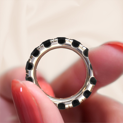 Das ist unser Jackie 4.7-Ring. Dieser spezielle Typ wird als eternity Ring bezeichnet und ist mit einer durchgehenden Linie von identisch geschliffenen Edelsteinen besetzt. Er ist aus 14 Karat Weißgold und mit kleineren 0.48 crt Schwarze Diamanten besetzt. Die erstaunlichen Schwarze Diamanten sind identisch in der Größe und im Ringband platziert. Unsere Schwarze Diamanten werden sorgfältig ausgewählt, damit sie identisch sind und somit das beste Ergebnis erzielen. Um das beste Ergebnis zu erzielen, positioniert unser Juwelier alle Schwarze Diamanten von Hand und mit größter Sorgfalt. Unsere Juweliere haben nur ein Ziel, nämlich den perfekten Ring zu kreieren. Deshalb lieben wir, was wir tun. Am Ende bekommen Sie einen atemberaubenden, exklusive Weißgold Vorsteckring mit einer Reihe von Schwarze Diamanten, die weder Anfang noch Ende zu haben scheinen. Das perfekte Symbol für Ihre unsterbliche Liebe zu ihr! Ist sie nicht eine Schönheit? Da wir unsere eigenen Ringe entwerfen und liefern, können wir Ihnen einen Ring zu einem Preis anbieten, den Sie nirgendwo anders finden. Ein Ring wird auf Bestellung angefertigt, wodurch kein überschüssiges Material anfällt. So können wir Ihnen ein gutes Angebot zum besten Preis machen. Wir verstehen, dass es sich riskant anfühlt, Ihren Ring online zu kaufen. Jedoch helfen wir Ihnen gerne beim Designprozess unter Berücksichtigung Ihres Budgets.Unser Team von talentierten, leidenschaftlichen Designern fügt unserer Online-Kollektion täglich neue Ringe-Designs hinzu. Unser Ziel dabei ist es, Ihnen eine große Vielfalt an Schmuckstücken anbieten zu können. Bitte zögern Sie nicht, ein Angebot anzufordern, wenn Sie spezielle Wünsche für Ihren Ring haben. Wir garantieren Ihnen ein Angebot, das Sie nicht ablehnen können.Um es einfacher zu machen, bieten wir eine kostenlose 30-tägige Rücksendung.