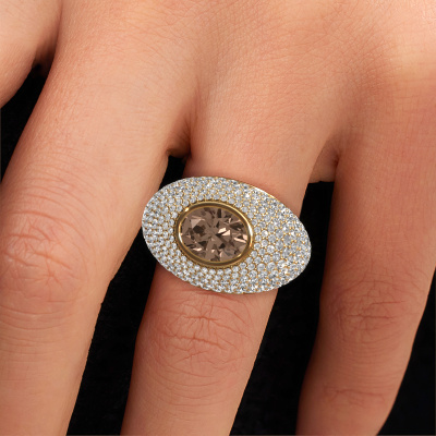 Suchen Sie einen Pavé Fassung Ring mit einem auffälligen,einzelnen Edelstein? Wie gefällt Ihnen dieser Armida Ring? Dieser Gold Armida Ring ist mit einem wunderschönen 1.80 crt oval Braun Diamant besetzt. Der Braun Diamant wird von unseren Braune Diamanten-Lieferanten sorgfältig ausgewählt. Anschließend werden diese Edelsteine nach alter Tradition von unserem Goldschiede gesetzt. Der Ring wird dann zur Perfektion poliert und zu einem einzigartigen Ring mit einem atemberaubenden Braun Diamant. Speziell für Sie angefertigt. Wie gefällt Ihnen dieser exklusive Gold Ring? Passen Sie diesen Armida Ring einfach mit unserem Online-Tool an. Anschließend wird Ihr persönlicher, Pavé Fassung Armida Ring in Handarbeit von unseren Goldschmieden angefertigt. Edelmetalle und Edelsteine können nach Ihren Wünschen angepasst werden. Haben Sie spezielle Wünsche, die in unserem Online-Tool nicht verfügbar sind? Setzen Sie sich mit uns in Verbindung. Wir passen Ihren persönlichen exklusive Ring nach Ihren Wünschen an.Da wir unsere eigenen Ringe entwerfen und liefern, können wir Ihnen einen Ring zu einem Preis anbieten, den Sie nirgendwo anders finden. Ein Ring wird auf Bestellung angefertigt, wodurch kein überschüssiges Material anfällt. So können wir Ihnen ein gutes Angebot zum besten Preis machen. Wir verstehen, dass es sich riskant anfühlt, Ihren Ring online zu kaufen. Jedoch helfen wir Ihnen gerne beim Designprozess unter Berücksichtigung Ihres Budgets.Um es einfacher zu machen, bieten wir eine kostenlose 30-tägige Rücksendung.