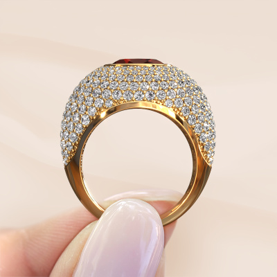Suchen Sie einen Pavé Fassung Ring mit einem auffälligen,einzelnen Edelstein? Wie gefällt Ihnen dieser Armida Ring? Dieser Gold Armida Ring ist mit einem wunderschönen 9x7 mm oval Granat besetzt. Der Granat wird von unseren Granat-Lieferanten sorgfältig ausgewählt. Anschließend werden diese Edelsteine nach alter Tradition von unserem Goldschiede gesetzt. Der Ring wird dann zur Perfektion poliert und zu einem einzigartigen Ring mit einem atemberaubenden Granat. Speziell für Sie angefertigt. Wie gefällt Ihnen dieser exklusive Gold Ring? Passen Sie diesen Armida Ring einfach mit unserem Online-Tool an. Anschließend wird Ihr persönlicher, Pavé Fassung Armida Ring in Handarbeit von unseren Goldschmieden angefertigt. Edelmetalle und Edelsteine können nach Ihren Wünschen angepasst werden. Haben Sie spezielle Wünsche, die in unserem Online-Tool nicht verfügbar sind? Setzen Sie sich mit uns in Verbindung. Wir passen Ihren persönlichen exklusive Ring nach Ihren Wünschen an.Da wir unsere eigenen Ringe entwerfen und liefern, können wir Ihnen einen Ring zu einem Preis anbieten, den Sie nirgendwo anders finden. Ein Ring wird auf Bestellung angefertigt, wodurch kein überschüssiges Material anfällt. So können wir Ihnen ein gutes Angebot zum besten Preis machen. Wir verstehen, dass es sich riskant anfühlt, Ihren Ring online zu kaufen. Jedoch helfen wir Ihnen gerne beim Designprozess unter Berücksichtigung Ihres Budgets.Um es einfacher zu machen, bieten wir eine kostenlose 30-tägige Rücksendung.