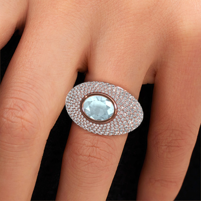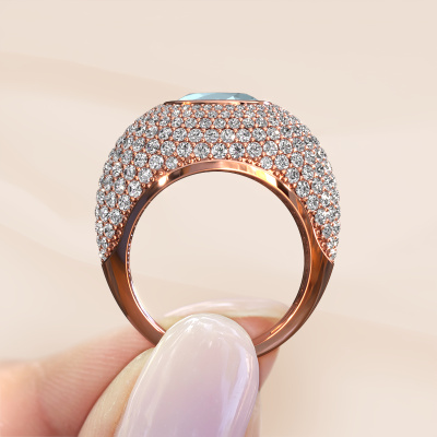 Suchen Sie einen Pavé Fassung Ring mit einem auffälligen,einzelnen Edelstein? Wie gefällt Ihnen dieser Armida Ring? Dieser Roségold Armida Ring ist mit einem wunderschönen 9x7 mm oval Aquamarin besetzt. Der Aquamarin wird von unseren Aquamarins-Lieferanten sorgfältig ausgewählt. Anschließend werden diese Edelsteine nach alter Tradition von unserem Goldschiede gesetzt. Der Ring wird dann zur Perfektion poliert und zu einem einzigartigen Ring mit einem atemberaubenden Aquamarin. Speziell für Sie angefertigt. Wie gefällt Ihnen dieser exklusive Roségold Ring? Passen Sie diesen Armida Ring einfach mit unserem Online-Tool an. Anschließend wird Ihr persönlicher, Pavé Fassung Armida Ring in Handarbeit von unseren Goldschmieden angefertigt. Edelmetalle und Edelsteine können nach Ihren Wünschen angepasst werden. Haben Sie spezielle Wünsche, die in unserem Online-Tool nicht verfügbar sind? Setzen Sie sich mit uns in Verbindung. Wir passen Ihren persönlichen exklusive Ring nach Ihren Wünschen an.Da wir unsere eigenen Ringe entwerfen und liefern, können wir Ihnen einen Ring zu einem Preis anbieten, den Sie nirgendwo anders finden. Ein Ring wird auf Bestellung angefertigt, wodurch kein überschüssiges Material anfällt. So können wir Ihnen ein gutes Angebot zum besten Preis machen. Wir verstehen, dass es sich riskant anfühlt, Ihren Ring online zu kaufen. Jedoch helfen wir Ihnen gerne beim Designprozess unter Berücksichtigung Ihres Budgets.Um es einfacher zu machen, bieten wir eine kostenlose 30-tägige Rücksendung.