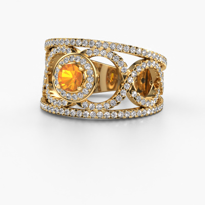 Dieser exklusive Gold Regina Ring ist ein wahres Kunstwerk! Dieser Ring besteht aus 14 Karat Gold und ist mit 4.2 mm rund Citrin besetzt. Die kleinsten Ornamente werden mit viel Geduld und großer Leidenschaft von unserem Goldschiede gefertigt. Um diesen Ring mit großer Präzision zu schaffen, erfordert dieses Handwerk ein scharfes Auge und eine geschickte Hand. Eine Herausforderung, die bei unseren erfahrenen Goldschmieden eine Leidenschaft entfacht. Die exquisiten Citrin sind so gesetzt, dass ihre einzigartigen Qualitäten verstärkt werden. Dies verleiht dem Ring eine noch glamouröse Erscheinung. Der Ring ist für sich einzigartig, wegen der natürlichen Edelsteine, die wir speziell für diesen Regina Ring ausgewählt haben. Und indem Sie das Edelmetall selbst auswählen, kreieren Sie einen einzigartigen Ring. Wie gefällt Ihnen dieser exklusive Gold Ring? Passen Sie diesen Regina Ring einfach mit unserem Online-Tool an. Anschließend wird Ihr persönlicher, besondere Regina Ring in Handarbeit von unseren Goldschmieden angefertigt. Edelmetalle und Edelsteine können nach Ihren Wünschen angepasst werden. Haben Sie spezielle Wünsche, die in unserem Online-Tool nicht verfügbar sind? Setzen Sie sich mit uns in Verbindung. Wir passen Ihren persönlichen exklusive Ring nach Ihren Wünschen an.Mit unserer modernen Technik können wir Schmuckstücke von höchster Qualität mit größter Sorgfalt für Sie entwerfen und anpassen. Unsere Ringe sind immer um 30 Prozent günstiger als bei anderen Juwelieren. Wir fertigen Ringe auf Bestellung, also müssen wir keine großen Lager unterhalten. Wenn Sie ein bestimmtes Budget haben, beraten wir Sie gerne entsprechend.Um es einfacher zu machen, bieten wir eine kostenlose 30-tägige Rücksendung.