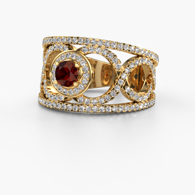 Dieser exklusive Gold Regina Ring ist ein wahres Kunstwerk! Dieser Ring besteht aus 14 Karat Gold und ist mit 4.2 mm rund Granat besetzt. Die kleinsten Ornamente werden mit viel Geduld und großer Leidenschaft von unserem Goldschiede gefertigt. Um diesen Ring mit großer Präzision zu schaffen, erfordert dieses Handwerk ein scharfes Auge und eine geschickte Hand. Eine Herausforderung, die bei unseren erfahrenen Goldschmieden eine Leidenschaft entfacht. Die exquisiten Granat sind so gesetzt, dass ihre einzigartigen Qualitäten verstärkt werden. Dies verleiht dem Ring eine noch glamouröse Erscheinung. Der Ring ist für sich einzigartig, wegen der natürlichen Edelsteine, die wir speziell für diesen Regina Ring ausgewählt haben. Und indem Sie das Edelmetall selbst auswählen, kreieren Sie einen einzigartigen Ring. Wie gefällt Ihnen dieser exklusive Gold Ring? Passen Sie diesen Regina Ring einfach mit unserem Online-Tool an. Anschließend wird Ihr persönlicher, besondere Regina Ring in Handarbeit von unseren Goldschmieden angefertigt. Edelmetalle und Edelsteine können nach Ihren Wünschen angepasst werden. Haben Sie spezielle Wünsche, die in unserem Online-Tool nicht verfügbar sind? Setzen Sie sich mit uns in Verbindung. Wir passen Ihren persönlichen exklusive Ring nach Ihren Wünschen an.Mit unserer modernen Technik können wir Schmuckstücke von höchster Qualität mit größter Sorgfalt für Sie entwerfen und anpassen. Unsere Ringe sind immer um 30 Prozent günstiger als bei anderen Juwelieren. Wir fertigen Ringe auf Bestellung, also müssen wir keine großen Lager unterhalten. Wenn Sie ein bestimmtes Budget haben, beraten wir Sie gerne entsprechend.Um es einfacher zu machen, bieten wir eine kostenlose 30-tägige Rücksendung.