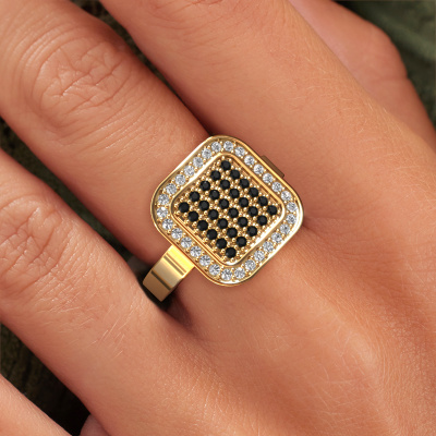 Dieser exklusive Gold Beatrice Ring ist ein wahres Kunstwerk! Dieser Ring besteht aus 14 Karat Gold und ist mit 0.660 crt rund Schwarze Diamanten besetzt. Die kleinsten Ornamente werden mit viel Geduld und großer Leidenschaft von unserem Goldschiede gefertigt. Um diesen Ring mit großer Präzision zu schaffen, erfordert dieses Handwerk ein scharfes Auge und eine geschickte Hand. Eine Herausforderung, die bei unseren erfahrenen Goldschmieden eine Leidenschaft entfacht. Die exquisiten Schwarze Diamanten sind so gesetzt, dass ihre einzigartigen Qualitäten verstärkt werden. Dies verleiht dem Ring eine noch glamouröse Erscheinung. Der Ring ist für sich einzigartig, wegen der natürlichen Edelsteine, die wir speziell für diesen Beatrice Ring ausgewählt haben. Und indem Sie das Edelmetall selbst auswählen, kreieren Sie einen einzigartigen Ring. Der Pavé Fassung Beatrice Ring, wie hier abgebildet, kann ganz nach Ihren Wünschen gestaltet werden. Unser Online-Tool bietet viele verschiedene Möglichkeiten. Bitte kontaktieren Sie uns, wenn Sie Änderungen an Ihrem Beatrice Ring wünschen, die in unserem Online-Tool nicht verfügbar sind.Nachdem Sie Ihre Bestellung aufgegeben haben, beginnen unsere Goldschmiede mit dem kreativen Prozess der Herstellung Ihres Beatrice Ring. Wir haben keine Lager. Das ist vorteilhaft, da diese Kosten nicht an Sie weitergegeben werden. Daher sind wir in der Lage, Schmuck zu außergewöhnlich niedrigen Preisen anzubieten.Um es einfacher zu machen, bieten wir eine kostenlose 30-tägige Rücksendung.