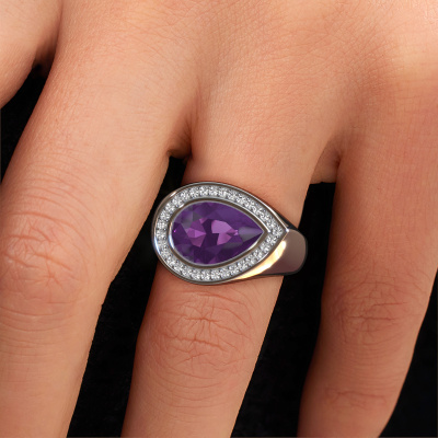 Suchen Sie einen besondere Ring mit einem auffälligen,einzelnen Edelstein? Wie gefällt Ihnen dieser Latashia Ring? Dieser Weißgold Latashia Ring ist mit einem wunderschönen 12x8 mm tropfen Amethyst besetzt. Der Amethyst wird von unseren Amethysten-Lieferanten sorgfältig ausgewählt. Anschließend werden diese Edelsteine nach alter Tradition von unserem Goldschiede gesetzt. Der Ring wird dann zur Perfektion poliert und zu einem einzigartigen Ring mit einem atemberaubenden Amethyst. Speziell für Sie angefertigt. Passen Sie Ihr eigenes, besondere Latashia Ring das dann von unseren Goldschmieden mit großer Leidenschaft angefertigt wird. Bevorzugen Sie eine andere Option, als hier beim Weißgold Latashia Ring? Dann bieten unsere Online-Tools verschiedene Möglichkeiten. Sie können uns jederzeit gerne um Hilfe fragen, wenn Sie nicht weiterkommen. Gerne beantworten wir Ihnen alle offenen Fragen!Durch die Kombination modernster Technik mit uralter Handwerkskunst können wir alle Ringe in unserem eigenen Studio anfertigen. Jedes Schmuckstück wird auf Anfrage gefertigt. Das ist vorteilhaft, weil wir Ihnen dadurch einen Preis anbieten können, den Sie nirgendwo anders finden.Um es einfacher zu machen, bieten wir eine kostenlose 30-tägige Rücksendung.