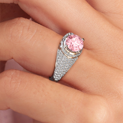 Dieser exklusive Weißgold Sharee Ring ist ein wahres Kunstwerk! Dieser Ring besteht aus 14 Karat Weißgold und ist mit 6.5 mm rund rosa Labordiamanten besetzt. Die kleinsten Ornamente werden mit viel Geduld und großer Leidenschaft von unserem Goldschiede gefertigt. Um diesen Ring mit großer Präzision zu schaffen, erfordert dieses Handwerk ein scharfes Auge und eine geschickte Hand. Eine Herausforderung, die bei unseren erfahrenen Goldschmieden eine Leidenschaft entfacht. Die exquisiten rosa Labordiamanten sind so gesetzt, dass ihre einzigartigen Qualitäten verstärkt werden. Dies verleiht dem Ring eine noch glamouröse Erscheinung. Der Ring ist für sich einzigartig, wegen der natürlichen Edelsteine, die wir speziell für diesen Sharee Ring ausgewählt haben. Und indem Sie das Edelmetall selbst auswählen, kreieren Sie einen einzigartigen Ring. Der besondere sharee Ring, wie hier abgebildet, kann ganz nach Ihren Wünschen gestaltet werden. Unser Online-Tool bietet viele verschiedene Möglichkeiten. Bitte kontaktieren Sie uns, wenn Sie Änderungen an Ihrem sharee Ring wünschen, die in unserem Online-Tool nicht verfügbar sind.Da wir unsere eigenen Ringe entwerfen und liefern, können wir Ihnen einen Ring zu einem Preis anbieten, den Sie nirgendwo anders finden. Ein Ring wird auf Bestellung angefertigt, wodurch kein überschüssiges Material anfällt. So können wir Ihnen ein gutes Angebot zum besten Preis machen. Wir verstehen, dass es sich riskant anfühlt, Ihren Ring online zu kaufen. Jedoch helfen wir Ihnen gerne beim Designprozess unter Berücksichtigung Ihres Budgets.Um es einfacher zu machen, bieten wir eine kostenlose 30-tägige Rücksendung.