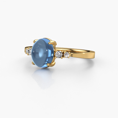 In diesem Foto ist der Gold Jelke Ring mit einem 8x6 mm oval cabochon Blau Topas besetzt. Cabochon bedeutet, dass ein Blau Topas zuerst geformt, nicht facettiert wird. Nämlich in eine bestimmte Form wie einen Tropfen, ein Herz oder ein oval cabochon. Anschließend wird er poliert, bis der Edelstein eine Runde Oberfläche hat. Ein Cabochon-Edelstein ist ein atemberaubender, nobler Blickfang, der perfekt zu einem zeitgenössischen wie auch zu einem Vintage-Stil passt. Unsere erfahrenen Goldschmiede formen den gewagte Ring bis zur Perfektion und machen ihn einzigartig. Der Cabochon Blau Topas ist so gefasst, dass seine einzigartigen Qualitäten verstärkt werden. Passen Sie Ihr eigenes, gewagte Jelke Ring das dann von unseren Goldschmieden mit großer Leidenschaft angefertigt wird. Bevorzugen Sie eine andere Option, als hier beim Gold Jelke Ring? Dann bieten unsere Online-Tools verschiedene Möglichkeiten. Sie können uns jederzeit gerne um Hilfe fragen, wenn Sie nicht weiterkommen. Gerne beantworten wir Ihnen alle offenen Fragen!Mit unserer modernen Technik können wir Schmuckstücke von höchster Qualität mit größter Sorgfalt für Sie entwerfen und anpassen. Unsere Ringe sind immer um 30 Prozent günstiger als bei anderen Juwelieren. Wir fertigen Ringe auf Bestellung, also müssen wir keine großen Lager unterhalten. Wenn Sie ein bestimmtes Budget haben, beraten wir Sie gerne entsprechend.Um es einfacher zu machen, bieten wir eine kostenlose 30-tägige Rücksendung.