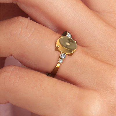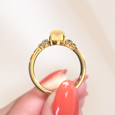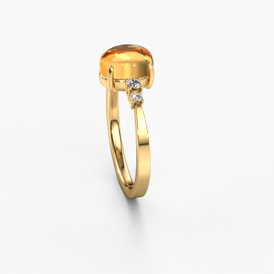 In diesem Foto ist der Gold Jelke Ring mit einem 8x6 mm oval cabochon Citrin besetzt. Cabochon bedeutet, dass ein Citrin zuerst geformt, nicht facettiert wird. Nämlich in eine bestimmte Form wie einen Tropfen, ein Herz oder ein oval cabochon. Anschließend wird er poliert, bis der Edelstein eine Runde Oberfläche hat. Ein Cabochon-Edelstein ist ein atemberaubender, nobler Blickfang, der perfekt zu einem zeitgenössischen wie auch zu einem Vintage-Stil passt. Unsere erfahrenen Goldschmiede formen den gewagte Ring bis zur Perfektion und machen ihn einzigartig. Der Cabochon Citrin ist so gefasst, dass seine einzigartigen Qualitäten verstärkt werden. Passen Sie Ihr eigenes, gewagte Jelke Ring das dann von unseren Goldschmieden mit großer Leidenschaft angefertigt wird. Bevorzugen Sie eine andere Option, als hier beim Gold Jelke Ring? Dann bieten unsere Online-Tools verschiedene Möglichkeiten. Sie können uns jederzeit gerne um Hilfe fragen, wenn Sie nicht weiterkommen. Gerne beantworten wir Ihnen alle offenen Fragen!Mit unserer modernen Technik können wir Schmuckstücke von höchster Qualität mit größter Sorgfalt für Sie entwerfen und anpassen. Unsere Ringe sind immer um 30 Prozent günstiger als bei anderen Juwelieren. Wir fertigen Ringe auf Bestellung, also müssen wir keine großen Lager unterhalten. Wenn Sie ein bestimmtes Budget haben, beraten wir Sie gerne entsprechend.Um es einfacher zu machen, bieten wir eine kostenlose 30-tägige Rücksendung.
