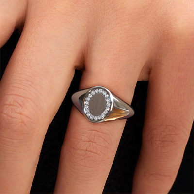 Dieser Weißgold Siegelring ist ein wahres Kunstwerk! Das ist unser modische Rosy Oval 1 Siegelring und ist mit 0.008 crt rund Lab-grown Diamant besetzt. In unserem Studio verwenden wir eine Kombination aus den neuesten Techniken und traditioneller