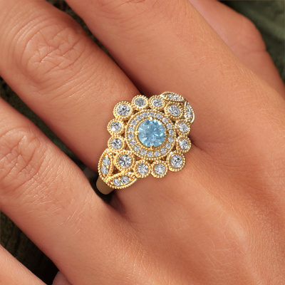 Haben Sie einen Vintage-Fetisch? Dann passt dieser Gold Ring perfekt zu Ihnen. Er hat ein zeitgemäßes Design, basierend auf klassischen Designs. Ein leicht romantisches, außergewöhnliches Design! Sogar noch mehr, wenn Sie ihn nach Ihren Wünschen anpassen. Dieser Flower Elia Ring ist mit exquisiten blauer Labordiamanten besetzt. Wie Sie sehen können, können Sie einfach einen Edelstein wählen, der zu Ihrem Stil passt. Jeder Edelstein wird sorgfältig von unseren Händlern ausgewählt, die auf der ganzen Welt verteilt sind. Nichts als die besten Edelsteine für unseren erfahrenen Goldschiede! Schließlich ist es seine Krönung!Unsere Goldschmiede kreieren Ihren individuellen Ring leidenschaftlich, mit größter Sorgfalt und nach Ihren Wünschen. Das Gold Ring, wie hier abgebildet, kann mit unserem Online-Tool individuell angepasst werden. Bitte fragen Sie unsere Schmuckdesigner um Hilfe, wenn Sie Änderungen wünsche, die in unserem Online-Tool nicht verfügbar sind. Gerne beantworten wir Ihnen alle offenen Fragen.Da wir unsere eigenen Ringe entwerfen und liefern, können wir Ihnen einen Ring zu einem Preis anbieten, den Sie nirgendwo anders finden. Ein Ring wird auf Bestellung angefertigt, wodurch kein überschüssiges Material anfällt. So können wir Ihnen ein gutes Angebot zum besten Preis machen. Wir verstehen, dass es sich riskant anfühlt, Ihren Ring online zu kaufen. Jedoch helfen wir Ihnen gerne beim Designprozess unter Berücksichtigung Ihres Budgets.Um es einfacher zu machen, bieten wir eine kostenlose 30-tägige Rücksendung.