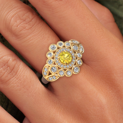 Haben Sie einen Vintage-Fetisch? Dann passt dieser Weißgold Ring perfekt zu Ihnen. Er hat ein zeitgemäßes Design, basierend auf klassischen Designs. Ein leicht romantisches, außergewöhnliches Design! Sogar noch mehr, wenn Sie ihn nach Ihren Wünschen anpassen. Dieser Flower Elia Ring ist mit exquisiten Gelb Saphir besetzt. Wie Sie sehen können, können Sie einfach einen Edelstein wählen, der zu Ihrem Stil passt. Jeder Edelstein wird sorgfältig von unseren Händlern ausgewählt, die auf der ganzen Welt verteilt sind. Nichts als die besten Edelsteine für unseren erfahrenen Goldschiede! Schließlich ist es seine Krönung!Unsere Goldschmiede kreieren Ihren individuellen Ring leidenschaftlich, mit größter Sorgfalt und nach Ihren Wünschen. Das Weißgold Ring, wie hier abgebildet, kann mit unserem Online-Tool individuell angepasst werden. Bitte fragen Sie unsere Schmuckdesigner um Hilfe, wenn Sie Änderungen wünsche, die in unserem Online-Tool nicht verfügbar sind. Gerne beantworten wir Ihnen alle offenen Fragen.Da wir unsere eigenen Ringe entwerfen und liefern, können wir Ihnen einen Ring zu einem Preis anbieten, den Sie nirgendwo anders finden. Ein Ring wird auf Bestellung angefertigt, wodurch kein überschüssiges Material anfällt. So können wir Ihnen ein gutes Angebot zum besten Preis machen. Wir verstehen, dass es sich riskant anfühlt, Ihren Ring online zu kaufen. Jedoch helfen wir Ihnen gerne beim Designprozess unter Berücksichtigung Ihres Budgets.Um es einfacher zu machen, bieten wir eine kostenlose 30-tägige Rücksendung.